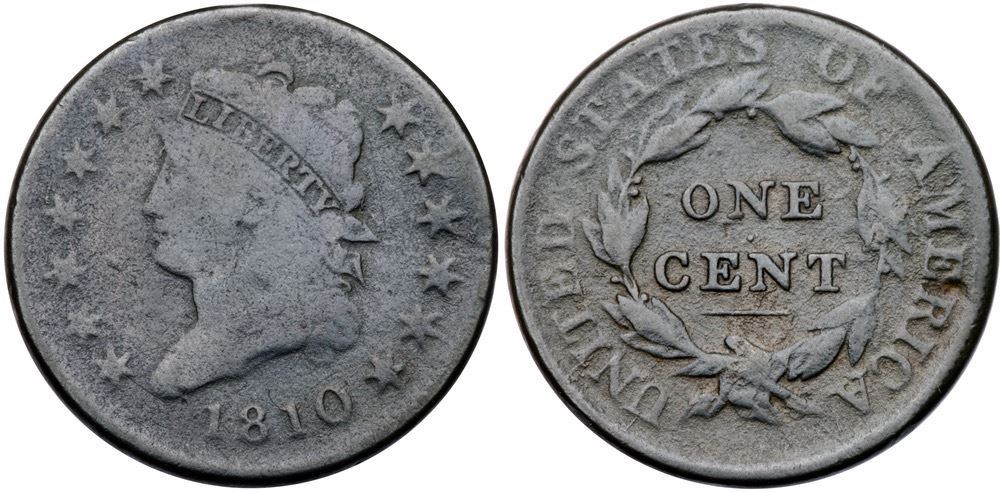 1810 S-285 R-2 G5A point or so sharper but the surfaces are slightly rough and there are wispy pin scratches in the obverse fields. Glossy dark olive obverse, a couple shades lighter on the reverse with hints of light brown in some protected areas. Strong date and legends.Certificate Number: