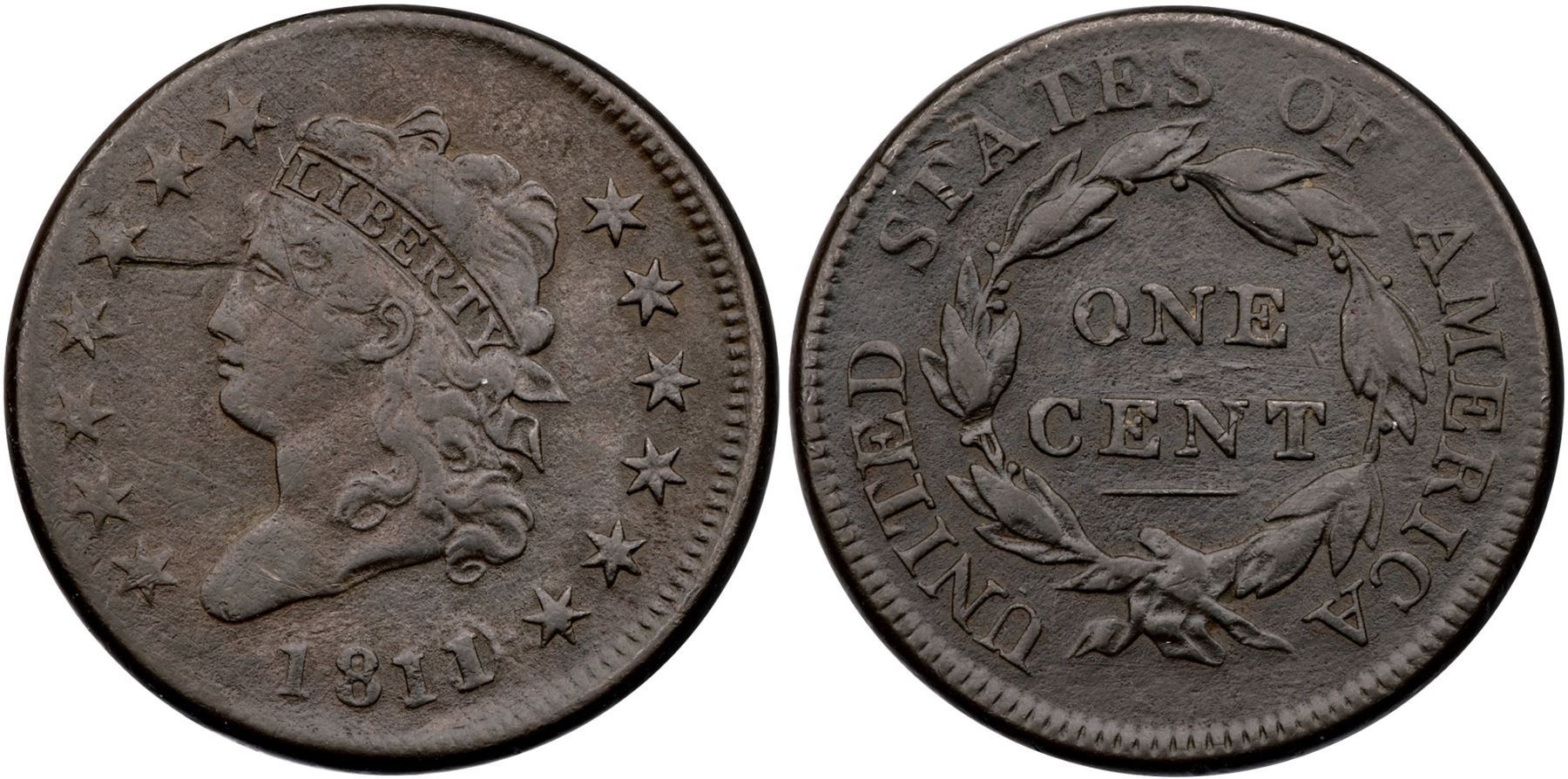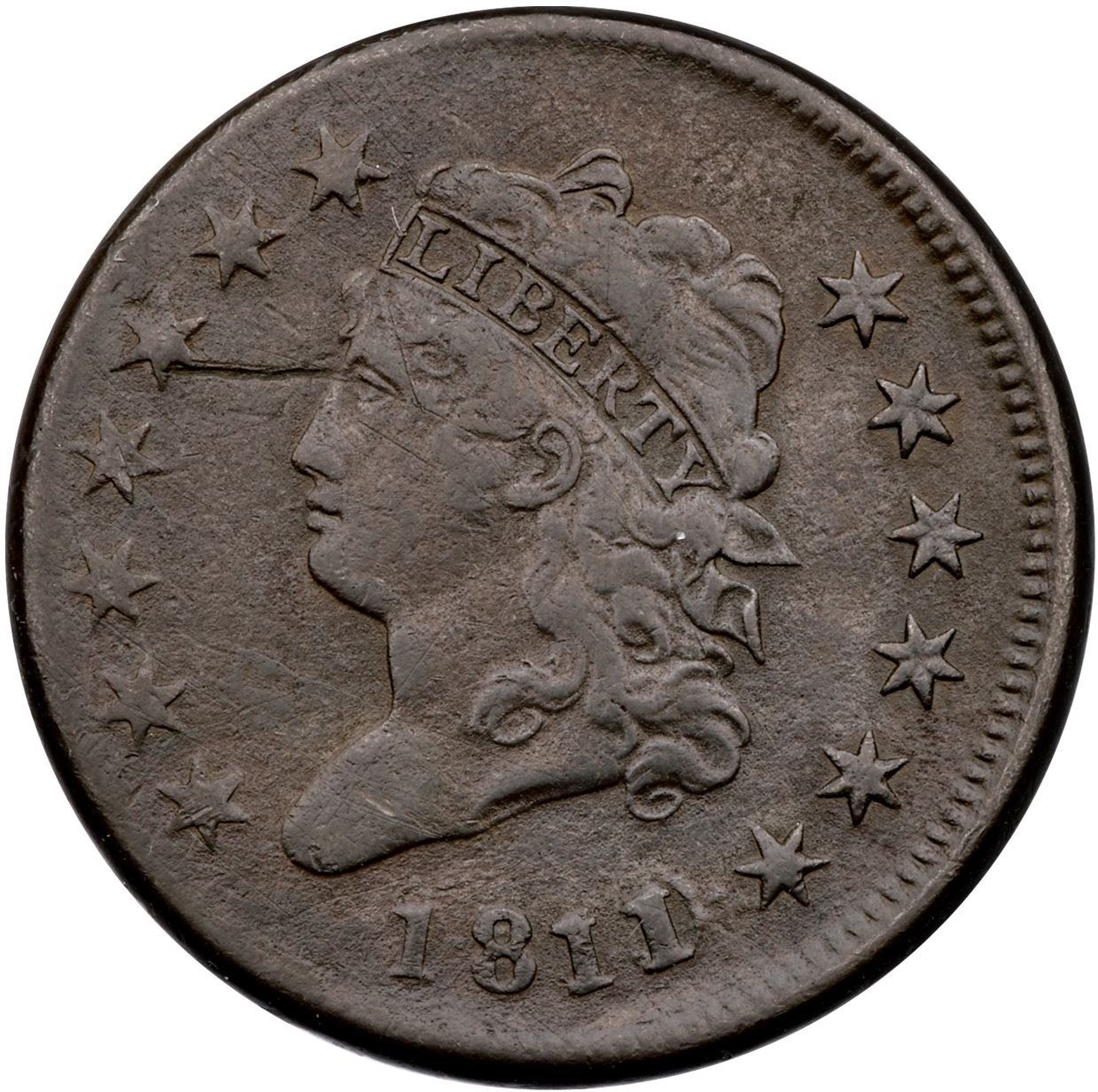 1811/10 S-286 R3 Overdate 11 over 10 VG10Ten points sharper with very fine roughness in the fields and protected areas. No verdigris and the only mark is a dull scratch from the eye to star 5. Slightly glossy olive brown and chocolate. MDS. The overdate is obvious.Certificate Number: Pedigree: From the Fred H. Borcherdt Collection