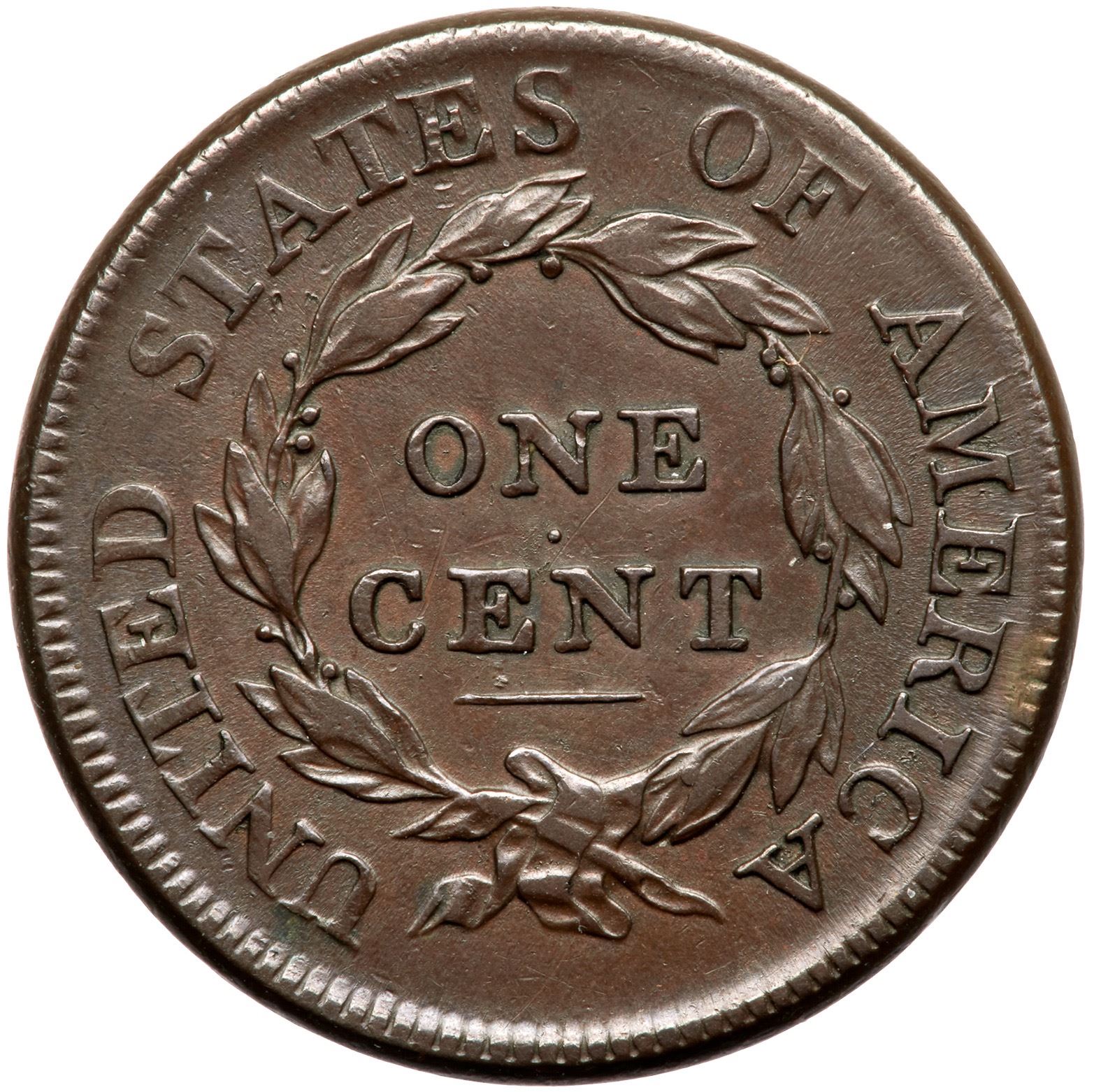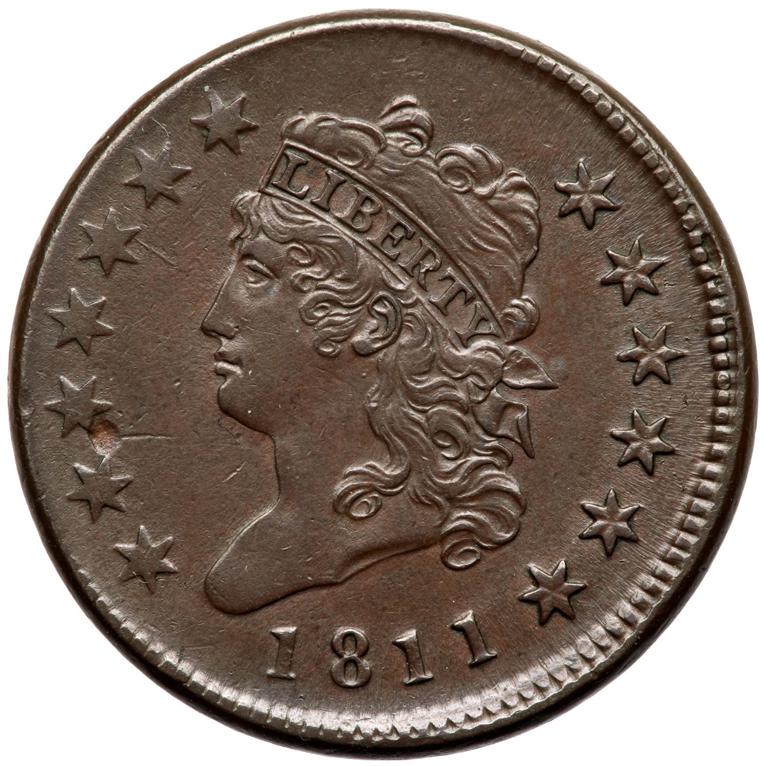 Five points sharper but there is a planchet chip at the lower right point of star 3, as struck but it does catch your eye. The only other notable marks are a thin line (nick, scratch, or struck-through?) right of the chip and another smaller chip hidden in the dentils at star 9. Otherwise the surfaces are smooth and nearly flawless. Glossy brown and light chocolate with mint frost in the fields and protected areas. MDS, Breen state III, with flowlined fields on both sides. Struck slightly off center to K-10 (which is typical of pieces in Breen state III). A nice cent that comes with an excellent provenance that has been traced back more than a century.