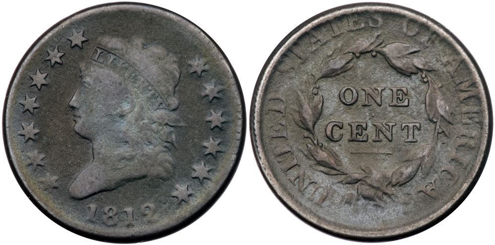 1812 S-290 R-1 G6VG10 sharpness but fine granularity covers the surfaces except the high points, which are smoother. Mostly dark olive hints of dark chocolate on the devices and legends. Free of marks, bold date and legends. M-LDS.Certificate Number: