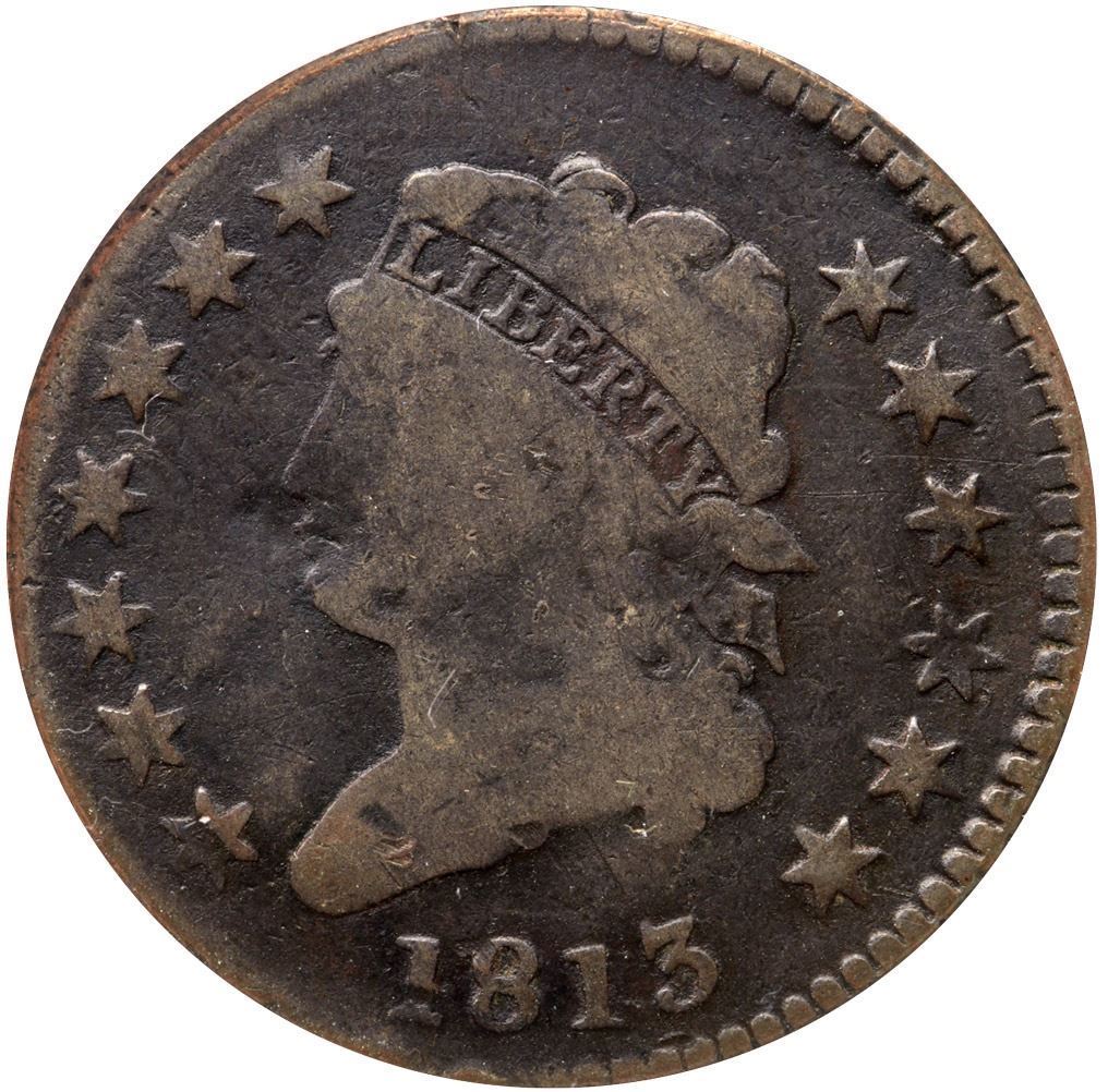 Mostly glossy olive brown with lighter steel brown toning on the devices. The surfaces are smooth and the only significant mark is a dull dent at the end of the nose and lips. Struck very slightly off center to K-9. The incuse impression is very slightly rotated and shifted off center in the opposite direction at least a millimeter. Both dates are strong. Our grade is net G6. The "Full Brockage Reverse" error is noted on the PCGS label. (The slab is scuffed)