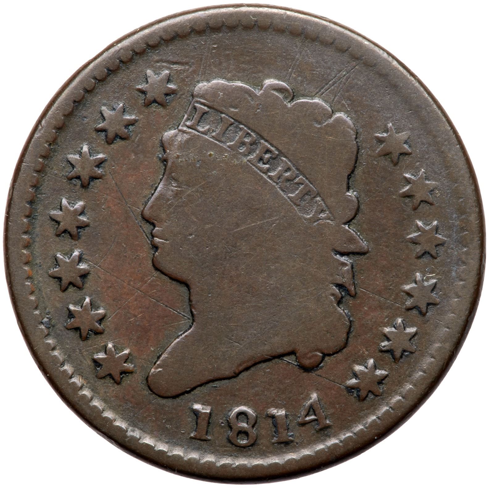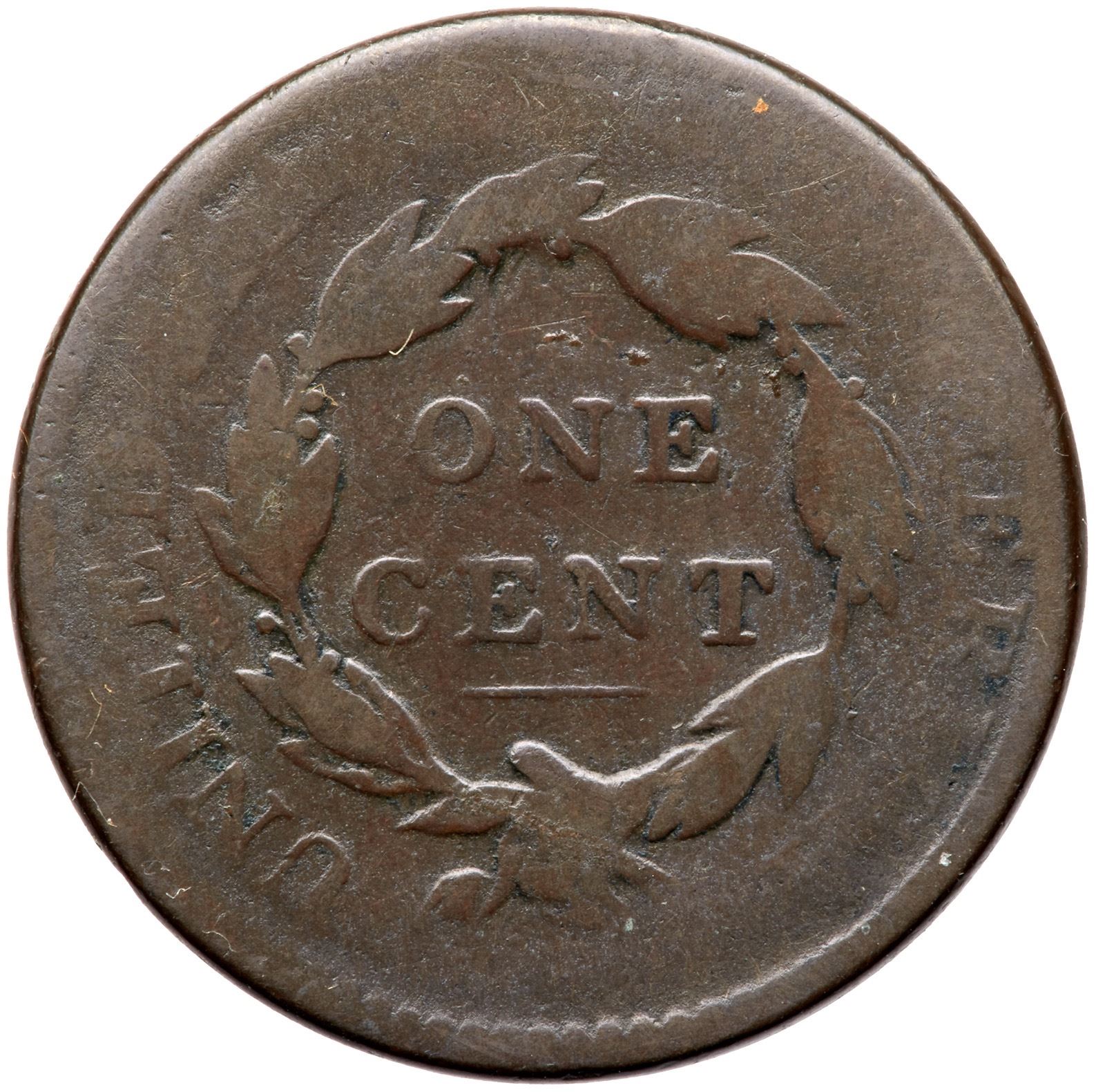 Glossy chocolate brown. Smooth with just a few trivial contact marks and nice eye appeal for the grade. The date is strong. What makes this piece special is that this piece was stuck to the obverse die when a new planchet was inserted, and the reverse was struck against the new planchet. There is no doubling on the obverse so this coin did not shift during the second strike, but the reverse suffered the usual swelling around the periphery that happens to a "brockage maker." The legend outside the wreath is weak as a result.