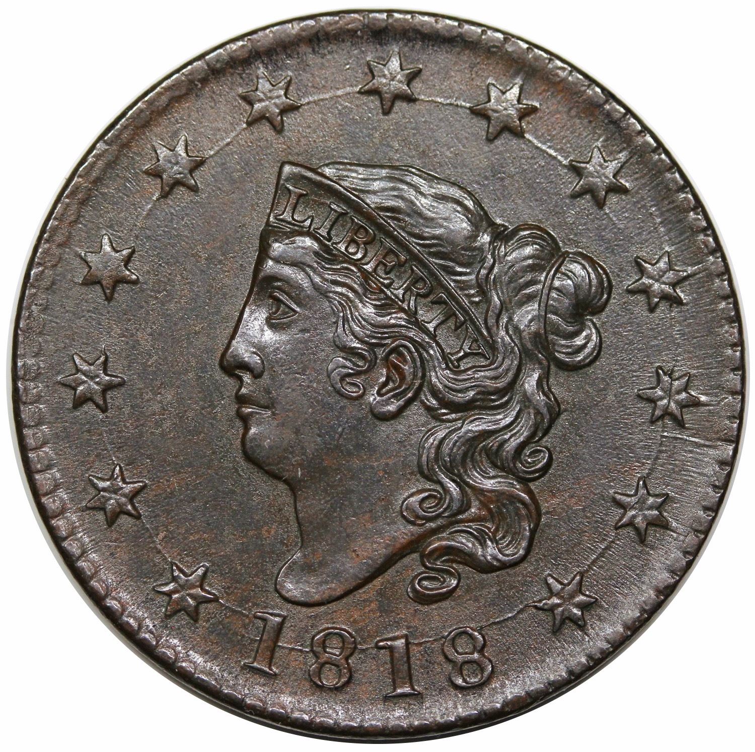 1818 Coronet Head Large Cent, N-10, R1, AU58.