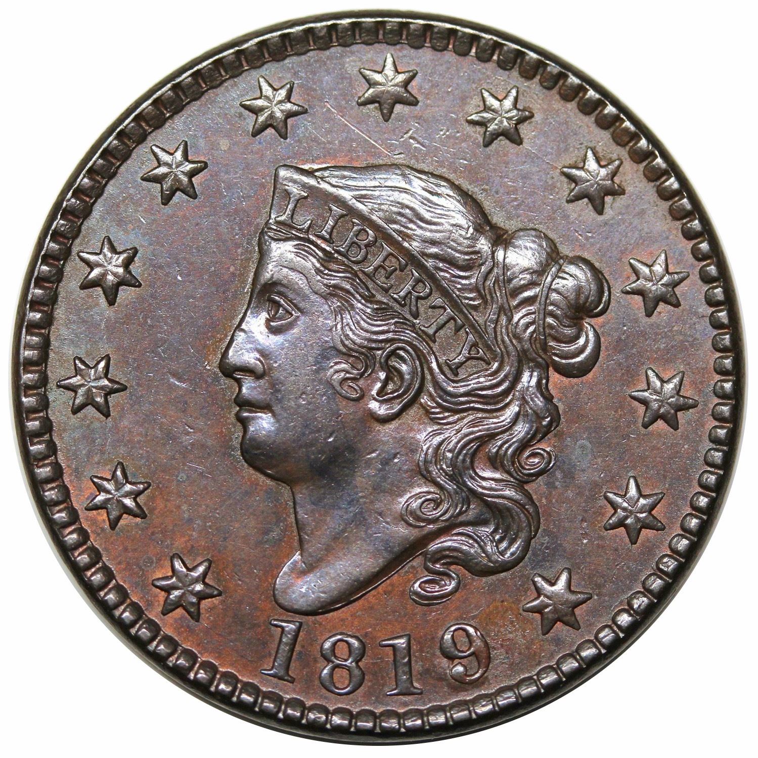 Large Date. A prooflike early die state specimen. Flashy mirror surfaces and sharp date repunching still showing. Very little wear, just the usual blunt strike on some of the high points. Lightly cleaned at some point but nicely retoned to a deep chocolate brown and tan with some colorful iridescence. Handful of minor nicks and tiny carbon spots, nothing egregious. Ex Pierre Fricke 10/28/2012 - John Pijewski, Goldberg’s 9/2019, lot 47.