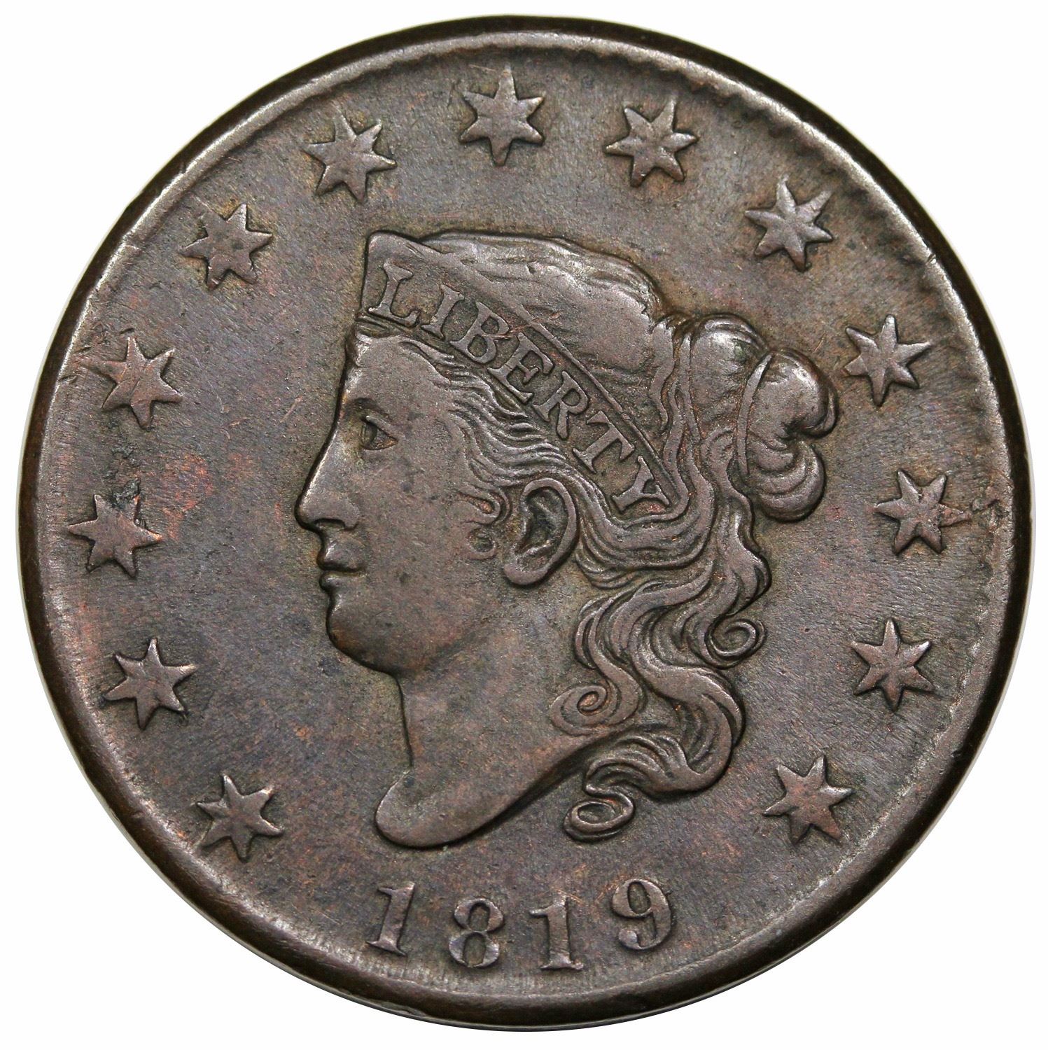 Small Date. Nice original olive brown surfaces. A little roughness at stars 3-4 is the only minor blemish. LDS, capping off a nice die state set of 1819 N-8 in this year’s sale.