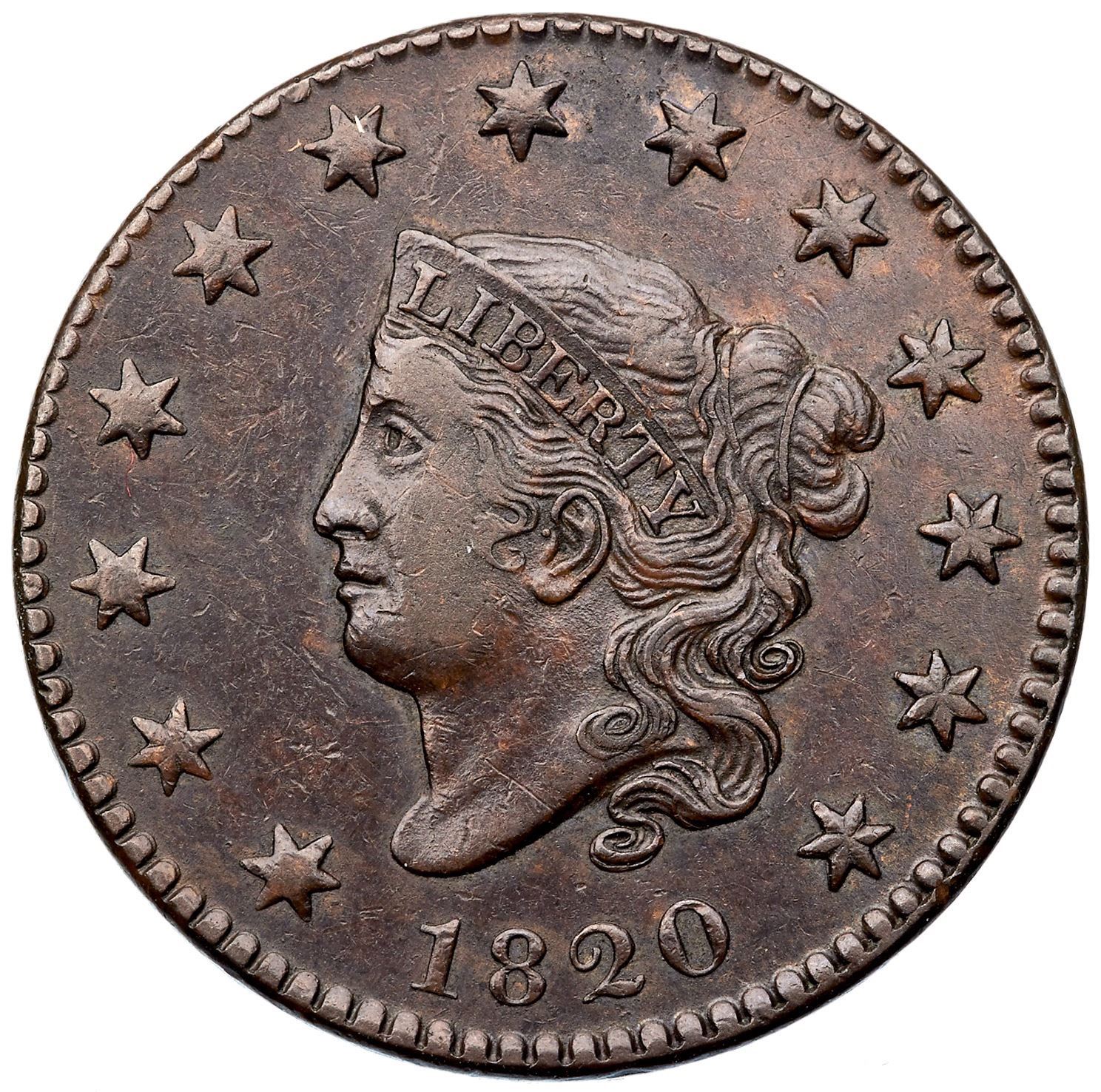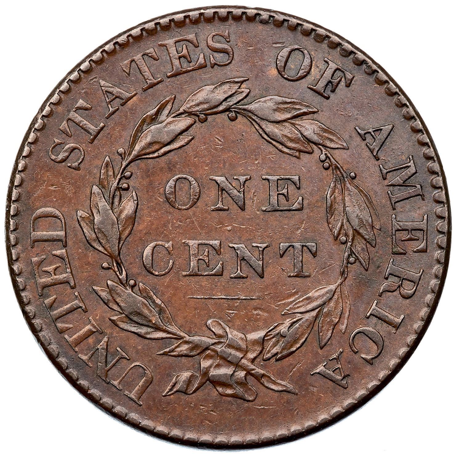 Frosty medium chocolate brown with slightly lighter brown toning on the reverse. Sharp and very nice for the grade showing light friction on the devices and trivial contact marks. A thin vertical nick over the tip of the coronet can help identify this cent. EDS, Grellman state a. The fields are hard, the dentils are crisp, and the tiny center dot on the reverse is clear.Certificate: Pedigree: Ex Tom Reynolds, 1999 EAC Sale, lot 412-Phil Moore 2017 EAC bourse (includes the EAC Sale lot ticket)