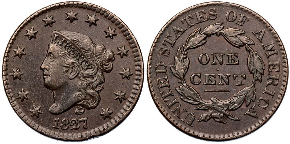 Very attractive glossy chocolate brown and steel. The fields are smooth and slightly reflective, and this cent has outstanding eye appeal. Close to VF35. E-MDS, Grellman state c. The obverse is cracked through the date and most stars, as usual, and the fine line from the outer point of star 12 to the dentils is still visible. Removed from an NGC slab graded AU50BN (NGC label #2598844-017 included, and it shows the attribution and Conour provenance).Certificate: Pedigree: Ex Jack Conour (via Shawn Yancey FPL) 4/21/2013-John Pijewski, McCawley & Grellman Auctions/Goldbergs 5/31/2015:273 (includes the Pijewski collection envelope and Goldberg lot ticket)