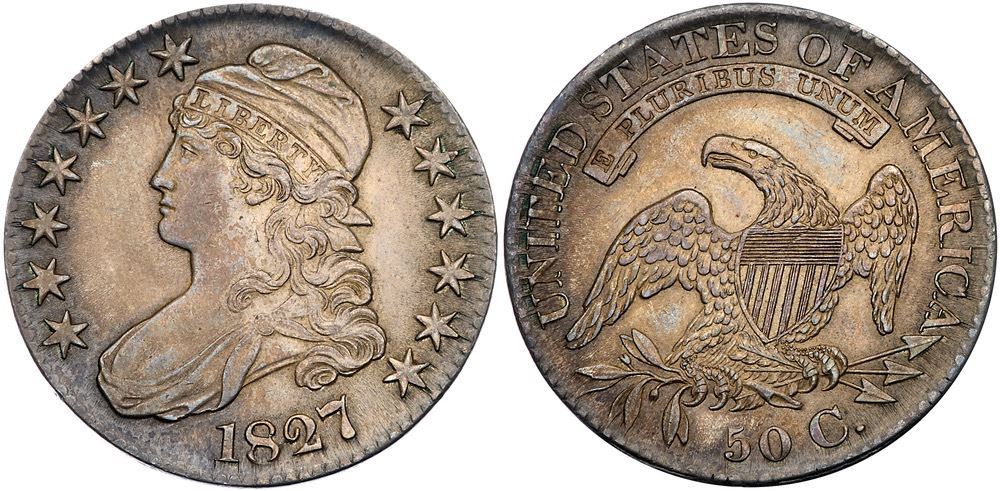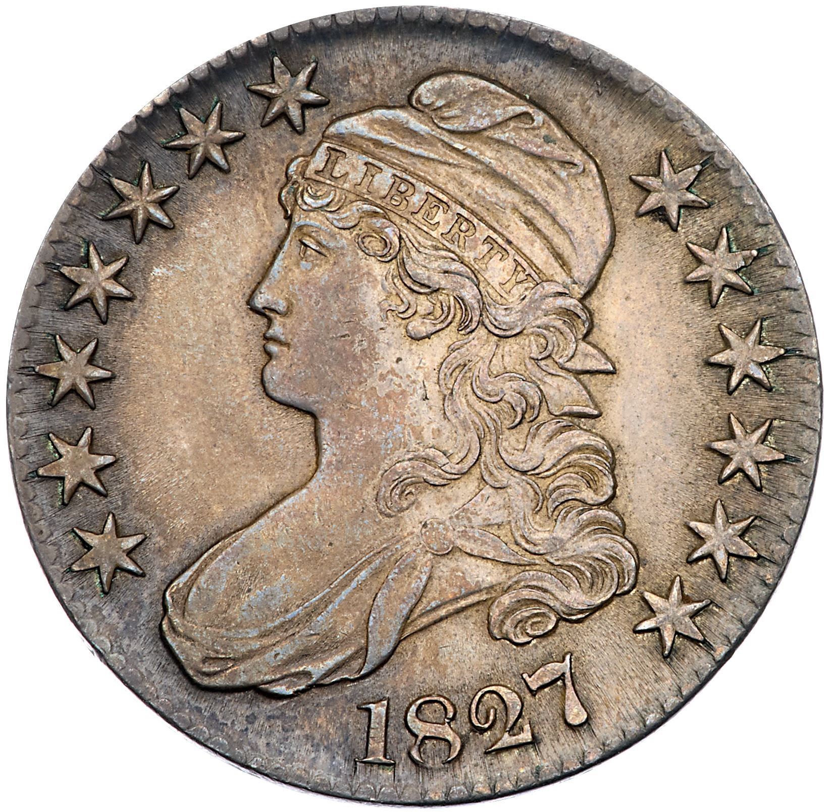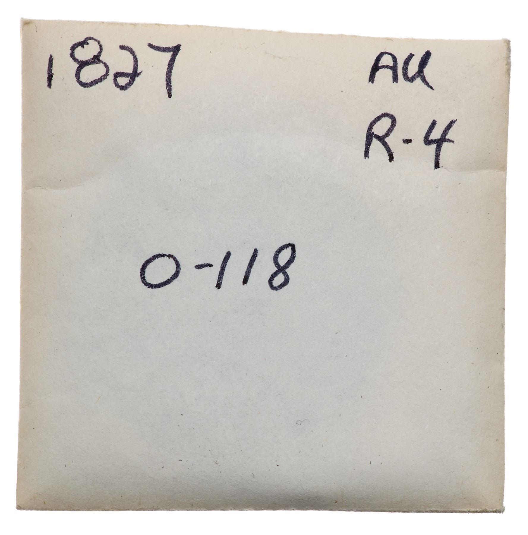 1827 Overton-118a Square Base 2 R3 AU50Frosty medium steel gray with lighter champagne and steel in protected areas. Essentially void of marks with light friction on the highpoints. Later die state with strong flowlines collecting the stars to the dentils.Certificate Number: Pedigree: Ex Fred H. Borcherdt Collection