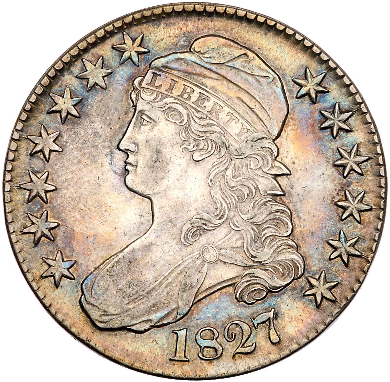 1827 Overton-121 Curl Base 2 R3 EF45Glossy silver with light bluish steel and champagne toning in the fields and protected areas. Smooth with light wear and trivial marks, none notable. Variety with a large C following 50.Certificate Number: Pedigree: Ex Fred H. Borcherdt Collection