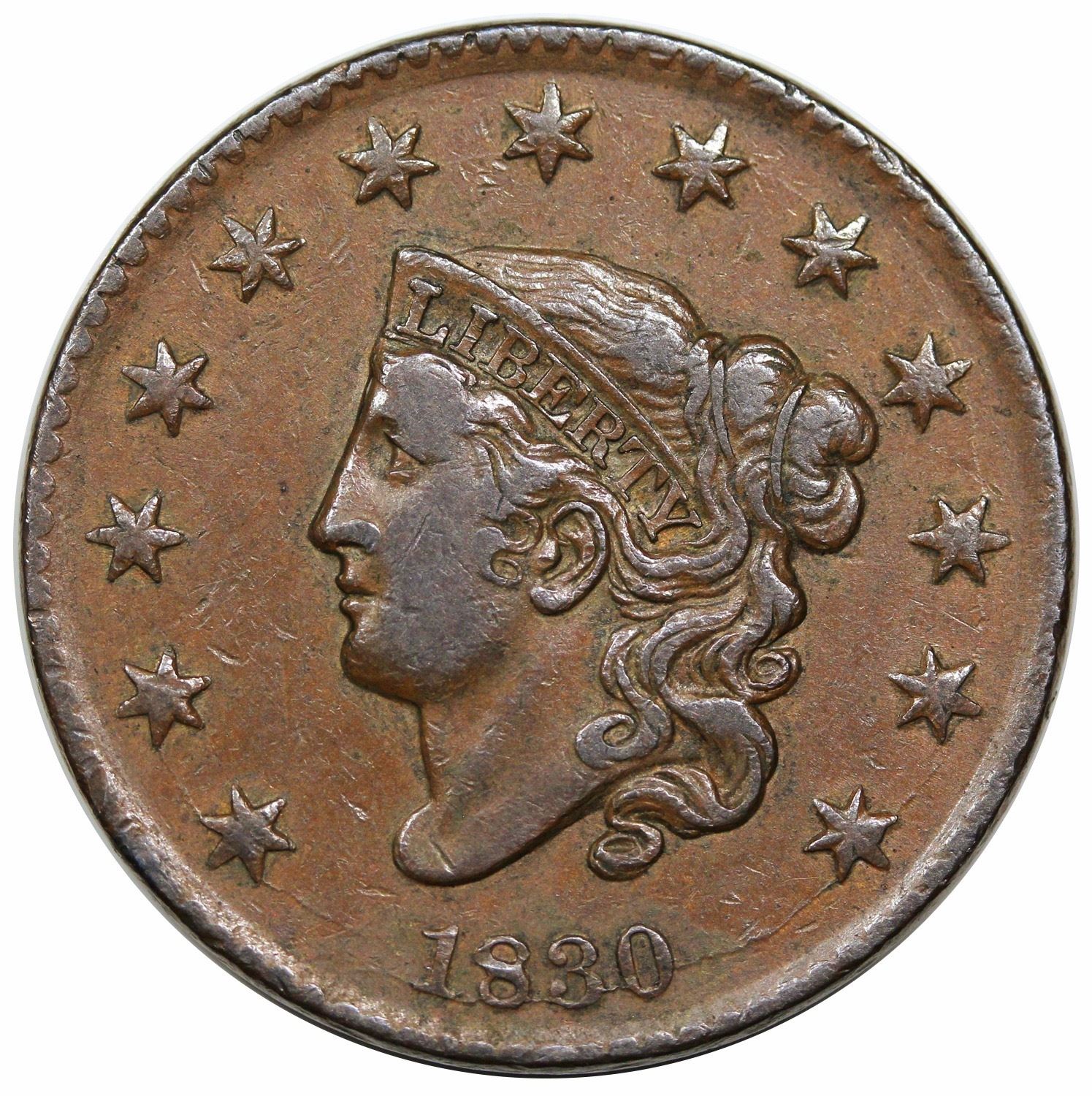 Large Letters. Glossy light chocolate brown with reddish-tan and steel undertones. Only minor marks, nice quality for the grade. MDS. Ex Doug Bird 5/2018 - John Hoskins.
