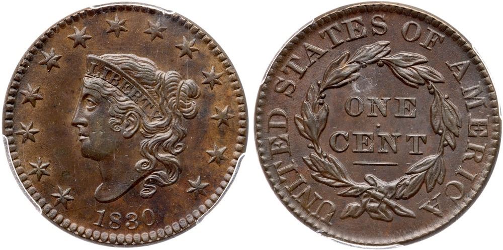 Frosty olive brown and steel with light steel brown in protected areas on the obverse. Looks mint state with excellent eye appeal, but a glass reveals a hint of friction on the highest points of the portrait. The only marks are a few trivial ticks on the cheek. MDS, Grellman state b, with a die crack from the bust tip to the dentils under star 1. The repunching on the 1 in the date is still clear. Our grade is AU55. The attribution is noted on the PCGS label.