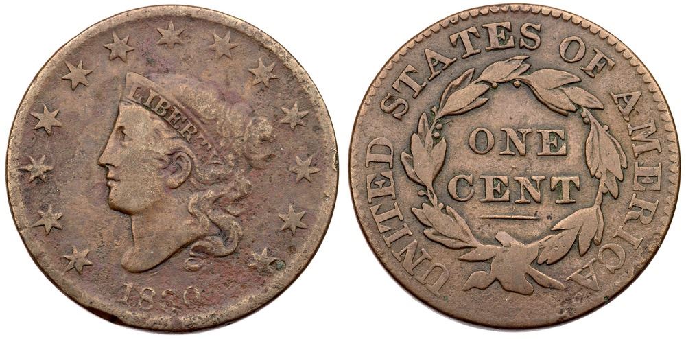 Sharpness near F12 but there is fine to moderate corrosion on the obverse, strongest from the date to star 13. The reverse is smooth and quite nice with just a few tiny pits at the end of the wreath stem. Mostly glossy chocolate and medium brown with reddish toning in the corroded areas on the obverse; the reverse is a more uniform glossy light to medium chocolate brown. Struck with the reverse slightly misaligned to the bottom, as usual for this variety.