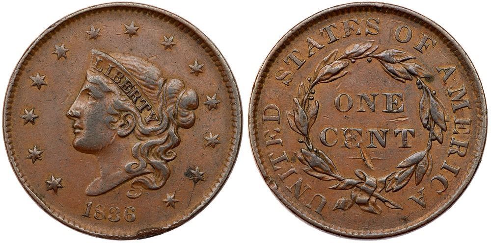 Sharpness near EF40 but there is a rim dent right of the date, a strong nick below EN in CENT, and a dull nick on the rim over the I in UNITED. Otherwise frosty and very nice showing only trivial marks. Light brown with slightly darker steel brown on the highpoints. M-LDS.Certificate: Pedigree: Ex Tom Reynolds 4/22/1995