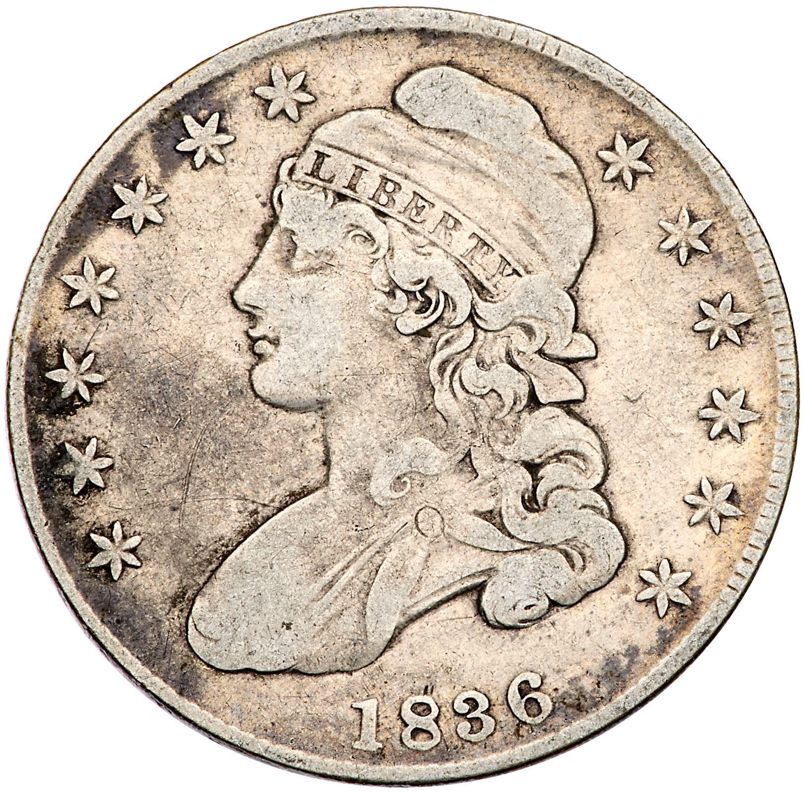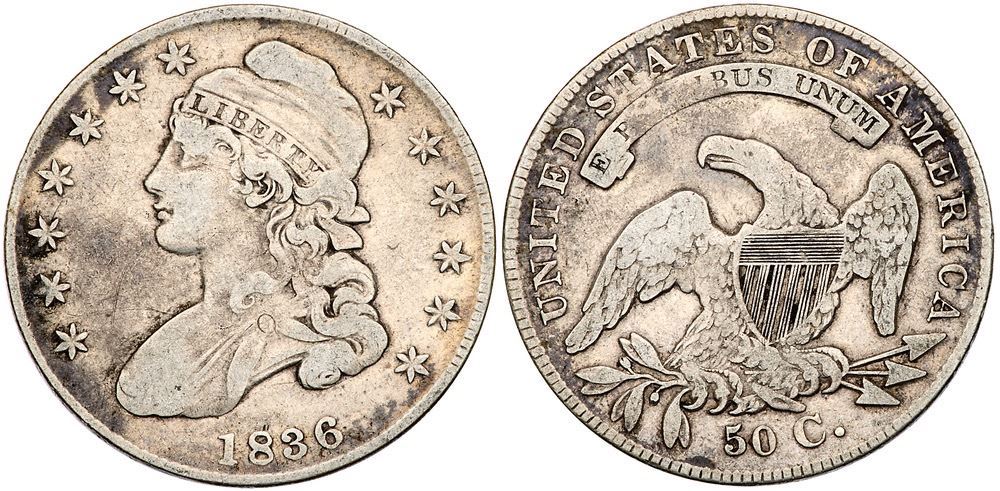 1836 Overton-112 R1 F12Slightly sharper but cleaned with some fine hairlines. Light to medium silvery gray with darker gray in protected areas. Later die state with just a few dentils remaining visible. The bar from the right side of the 6 is weak but visible.Certificate Number: Pedigree: Ex Fred H. Borcherdt Collection