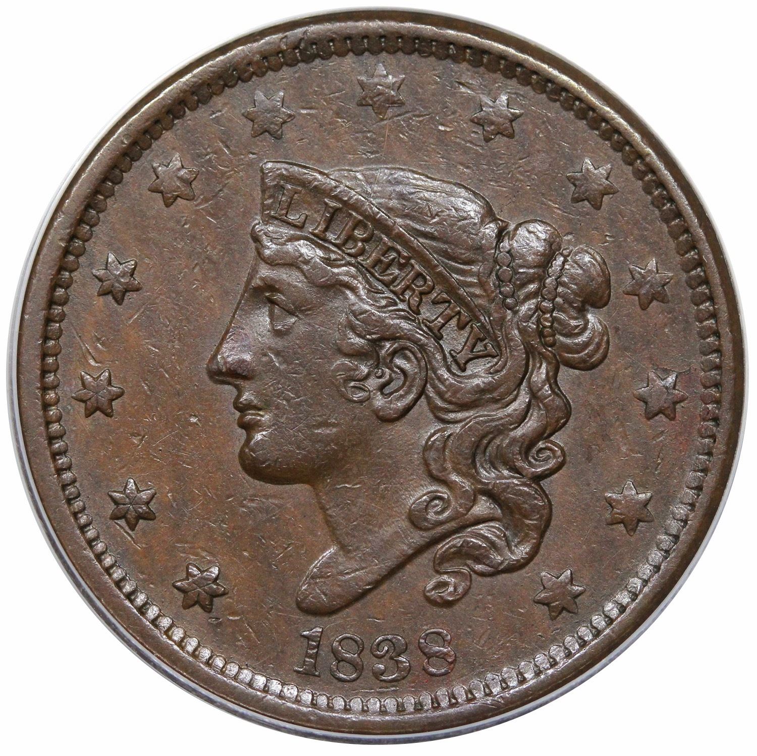 1838 Coronet Head Large Cent, N-5, R1, ANACS EF40.