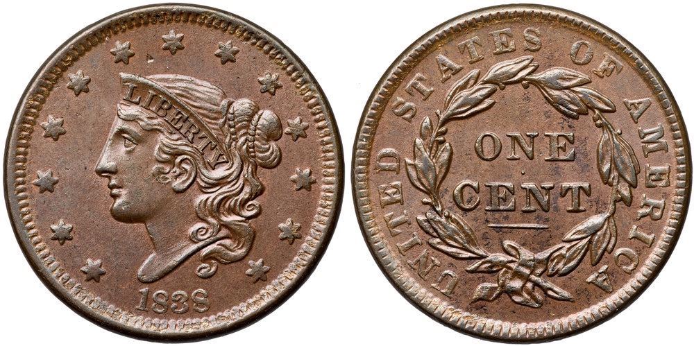 Frosty steel brown and light chocolate. The fields are lustrous and this cent has mint state eye appeal in spite of a hint of rub on the highest points of the devices. MDS.