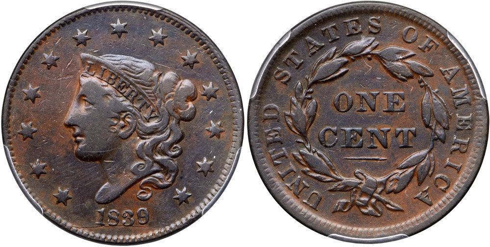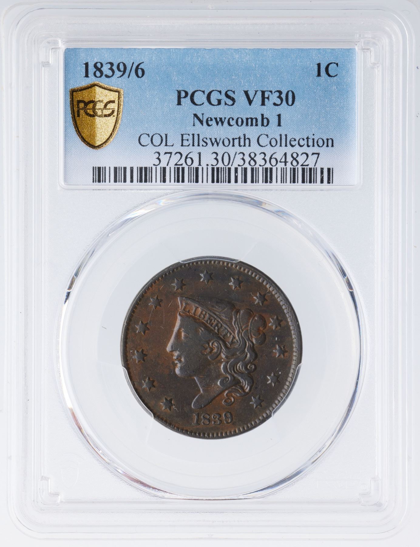 1839/6 N-1 R3+ Overdate 9 over 6 PCGS graded VF30