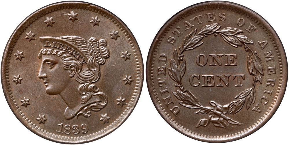 Frosty steel brown and olive. The surfaces are satiny and moderately lustrous. No spots or stains, only a few minor contact marks including a nick at the top of star 7 and a tiny, barely visible scratch just right of the date. A small planchet flake on the rim over the E in STATES may be the best identifying mark (as struck). E-MDS. Our grade is MS60. The attribution is noted on the ANACS label.