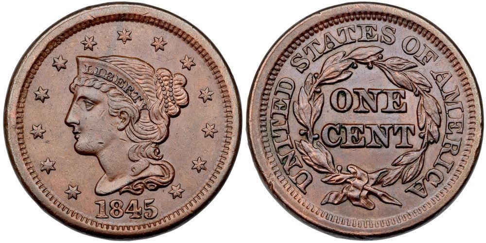 At least 5 points sharper but there are too many small contact marks on the portrait for the higher grade. Frosty steel brown with satiny mint luster in the fields and protected areas. Sharply struck EDS, die state a. From the Lucien Birkler collection (includes the Birkler collection envelope)
