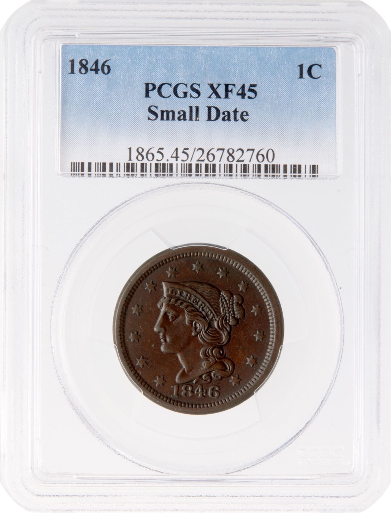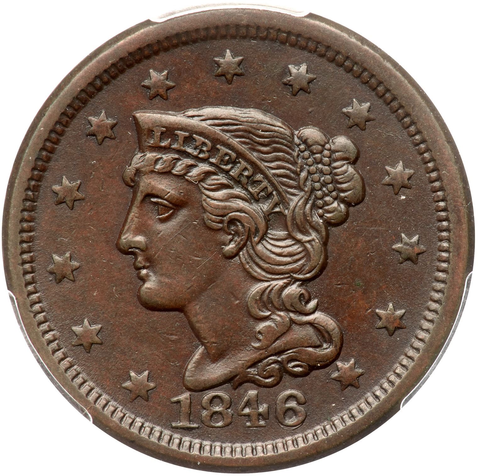 Frosty chocolate brown. No defects, just lightly worn on the devices. MDS, die state b. The repunching at the bottoms of the 4 & 6 is clear and vertical die lines have been added down through the ES in STATES. Our grade is VF35 and choice for the grade.