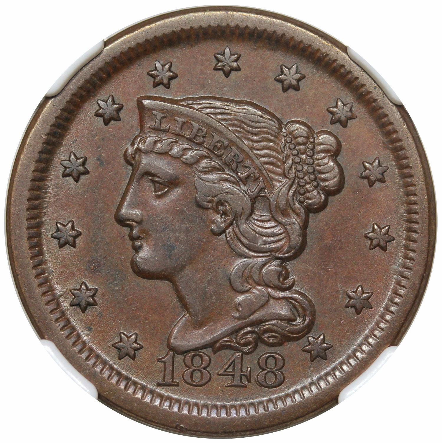 1848 Braided Hair Large Cent, N-3, R2, NGC AU53.