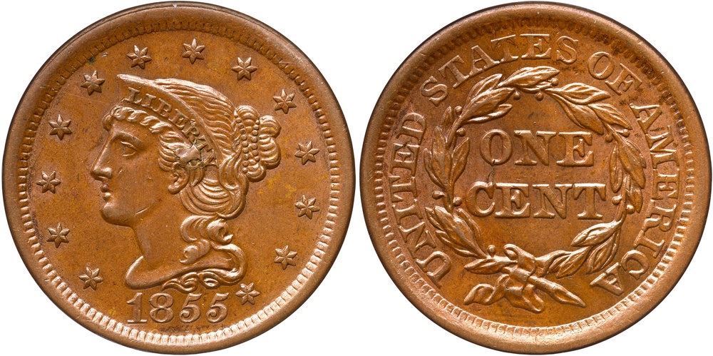 Glossy medium brown. Smooth and attractive but there is a bit of friction on the highpoints and a few light contact marks, the notable ones being a shallow dent on the "Knob" and a few ticks on the cheek. M-LDS, die state f early. The knob under the T is strong but the one under the Y is just starting to rise. Our grade is AU50. The attribution is noted on the ANACS label.