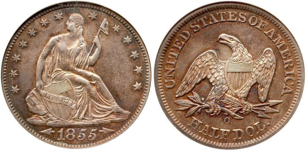 1855-O Seated Liberty Half Dollar, Arrows at Date without Stars, ANACS graded AU53