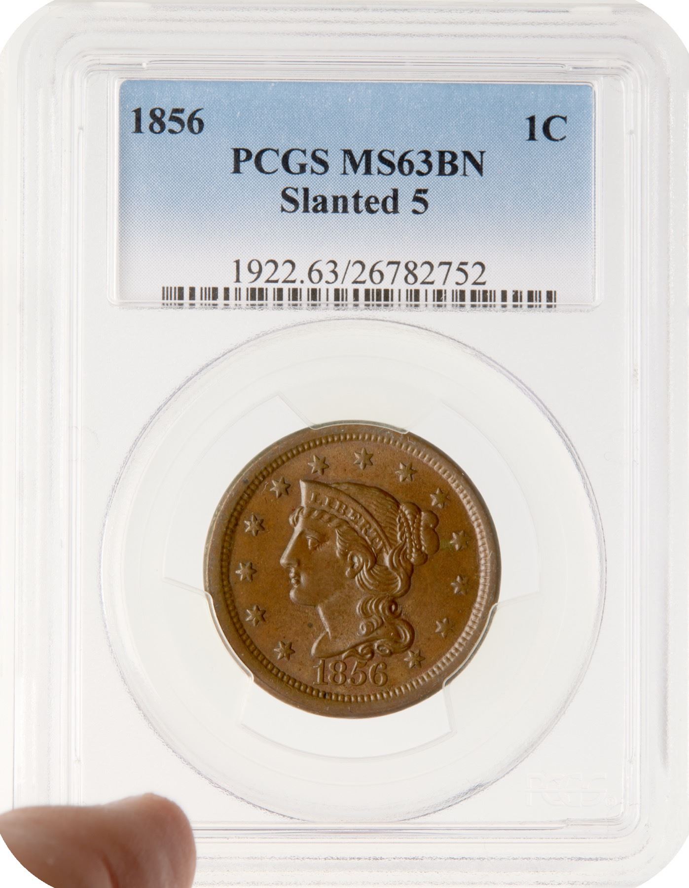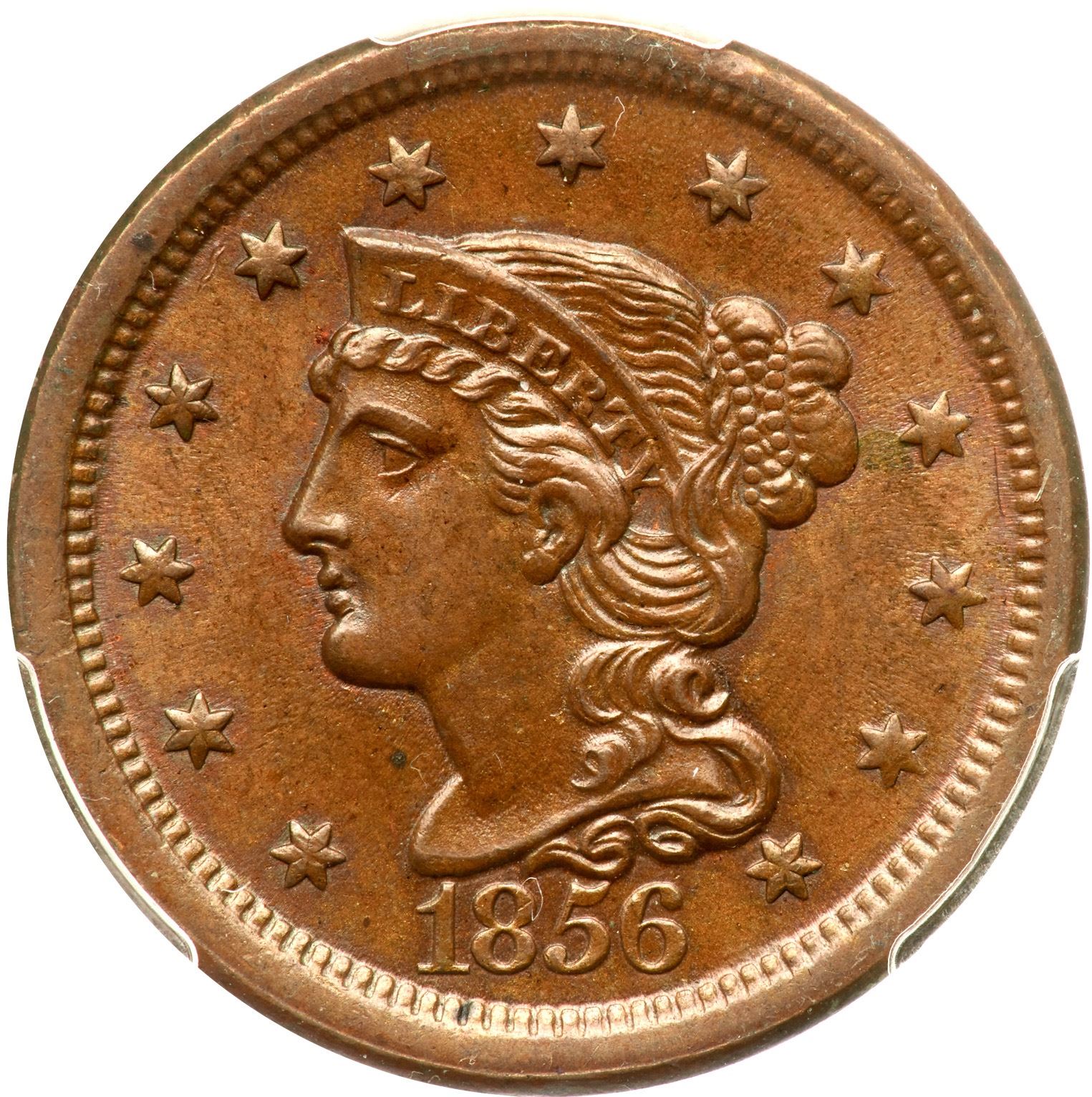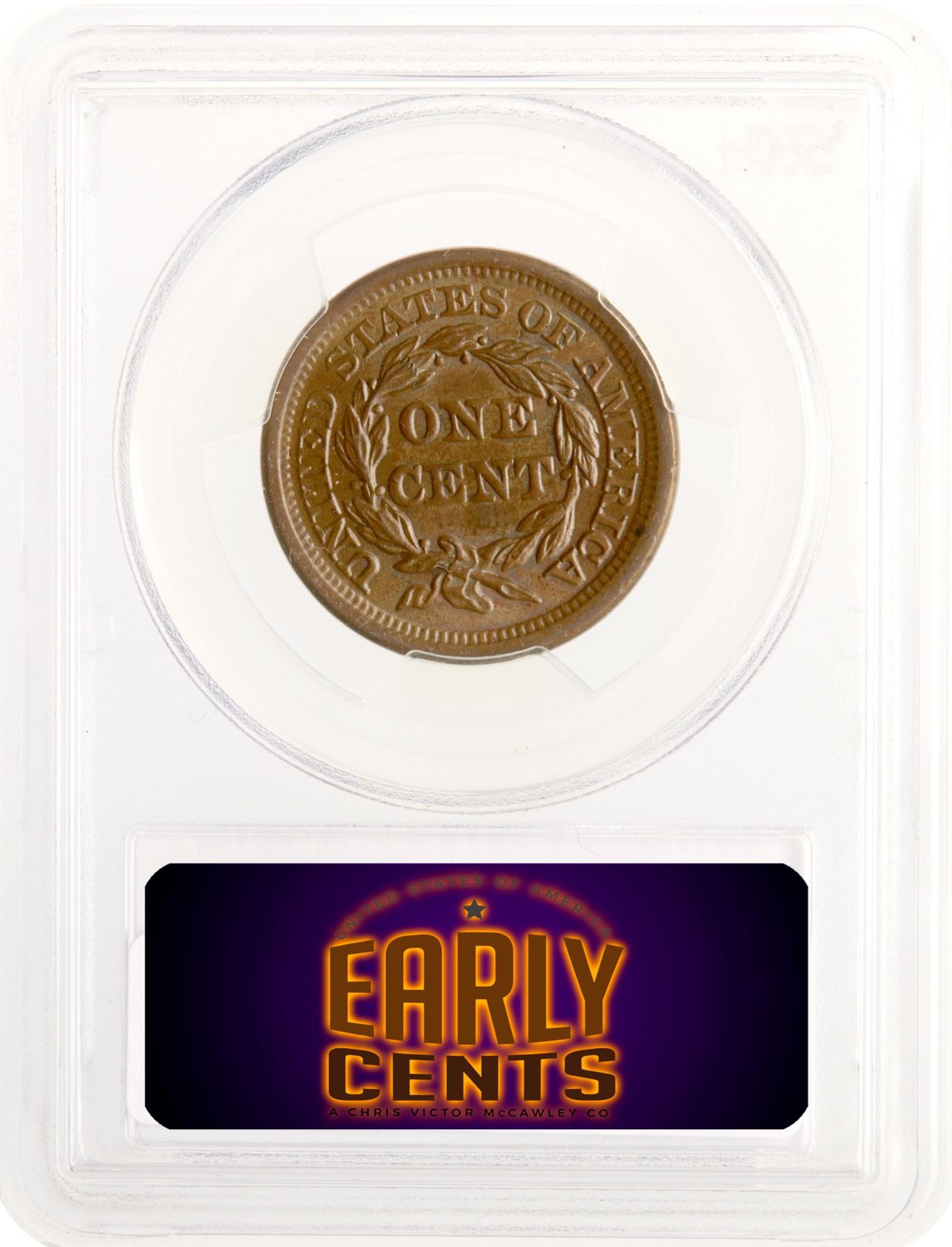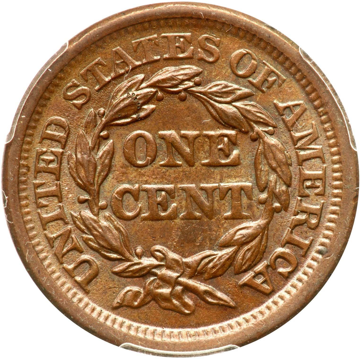 Attractive lustrous light olive and medium brown with subtle overtones of sea green on the reverse. No spots or stains, and the only marks are a collection of tiny ticks hidden in the leaves above the O in ONE. MDS, die state b. The earlier die lines at UN are gone and light flowlines cover the fields. The details in the hair at the top of the ear are not fully struck, as usual. Our grade is MS60.