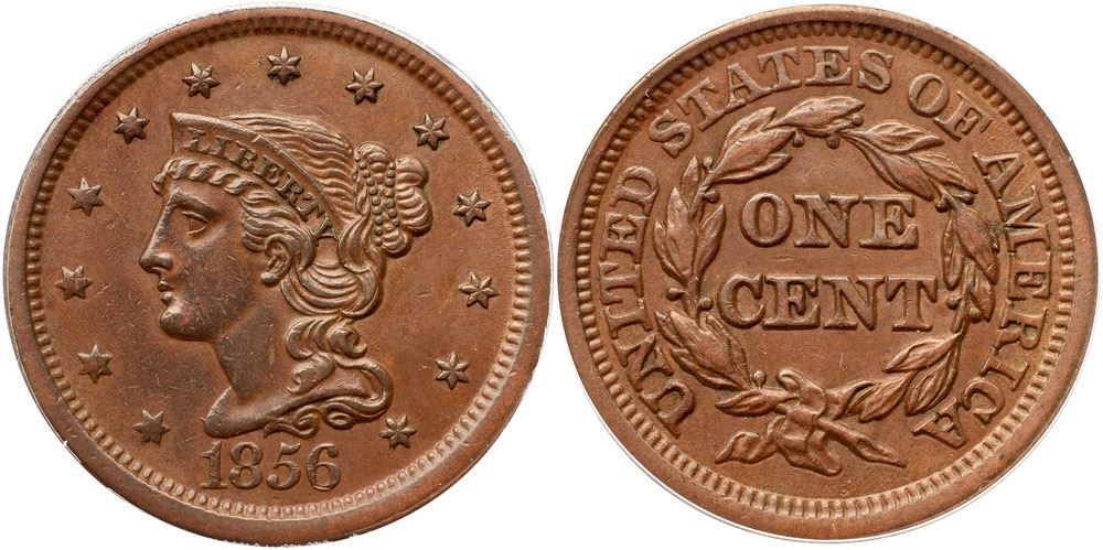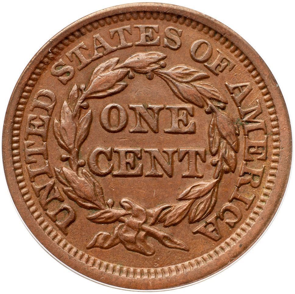 Frosty medium brown with darker steel brown on the obverse highpoints. Smooth and the only mark is a dull vertical nick or planchet chip in the center of the neck. MDS, die state c. Most of the die lines at ONE CENT are gone but there are no rim cud breaks on the obverse. Our grade is EF45. The attribution is noted on the ANACS label.