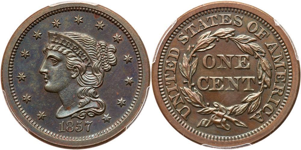 Beautiful bluish steel and olive with some lighter brown in protected areas on the reverse. The fields are reflective and covered with extremely fine die polishing lines. The stars and devices are as sharp as they ever get and this piece has great eye appeal. Just a couple trivial defects including a spot of brown toning on the bust and another at the dentil tips over star 8. Neither mark catches your eye. A microscopic line from the nose to star 3 is from the die and is found on many examples of the variety. A really nice example of this proof-only variety. Our grade is Proof-63+. The attribution is noted on the PCGS label 400610.64+/13590236 Ex Ellis Robison, Stack's 2/1982:542-Auction '82 (Stack's), lot 33-Herman Halpern, Stack's 3/16/1988:771-R. Tettenhorst 11/1994-Jack Wadlington (The Twin Leaf Collection), Stack's Bowers 7/16/2015:2729