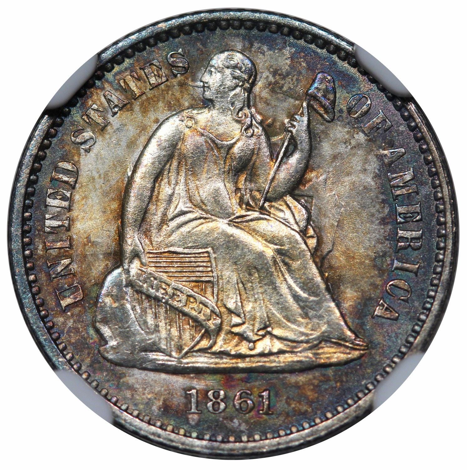 1861 Seated Liberty Half Dime, NGC MS65.