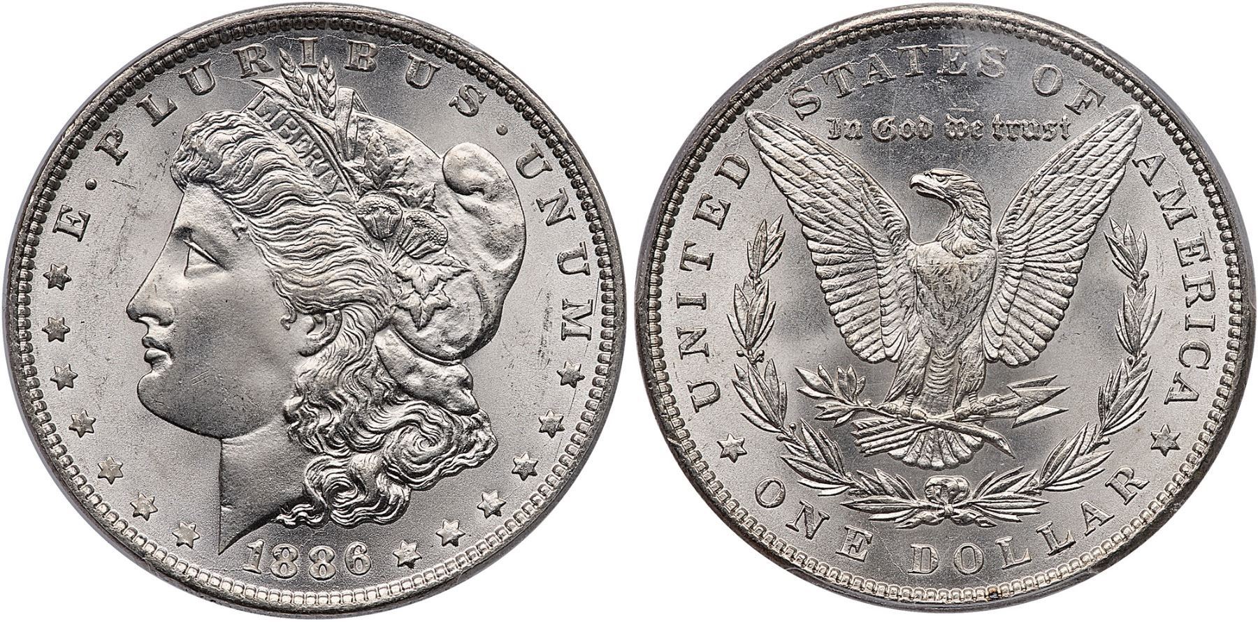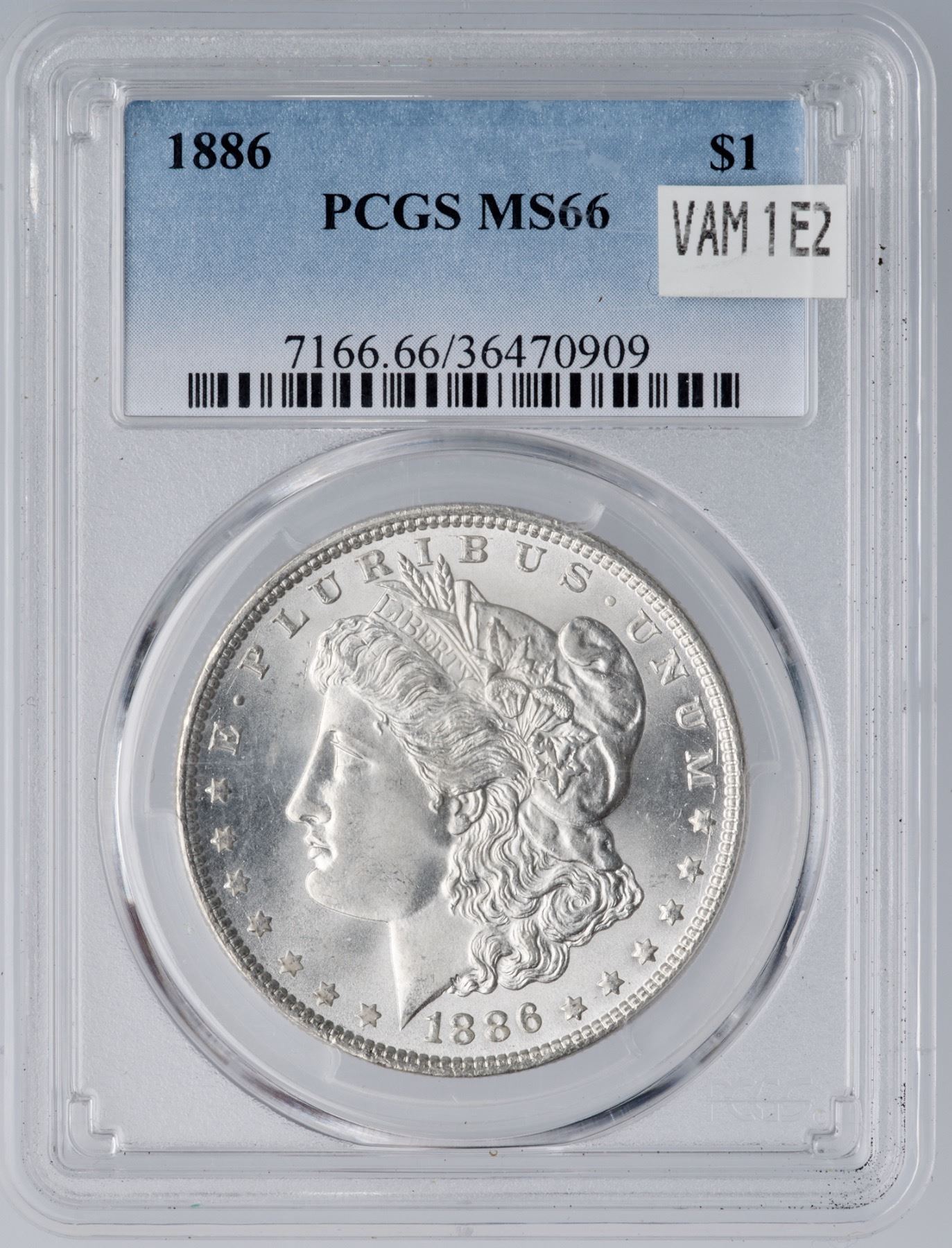 1886 VAM-1 Morgan Silver Dollar PCGS MS66Brilliant blast white on highly lustrous surfaces.Certificate Number: Pedigree: Ex; Phil Davis