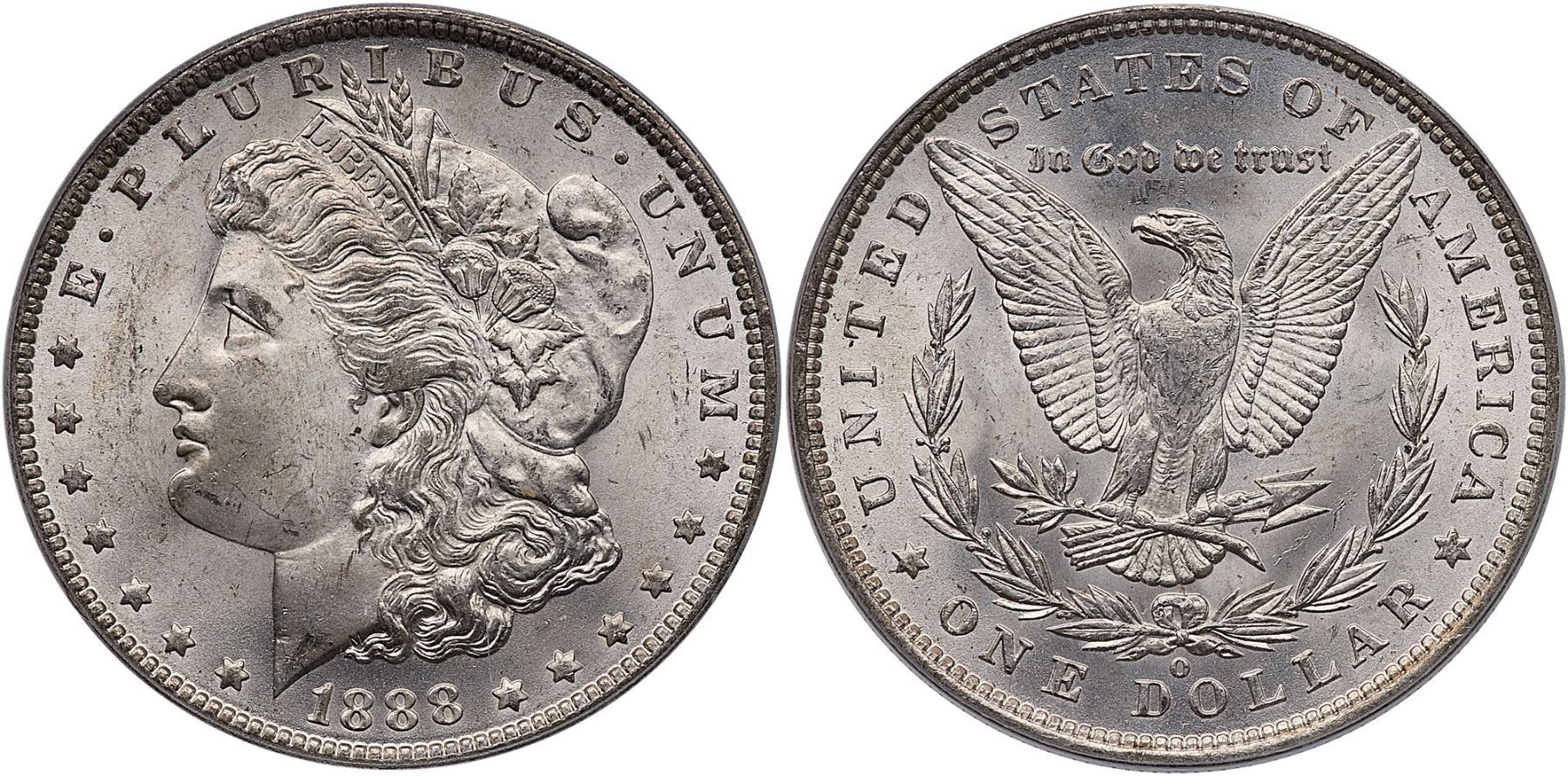 1888-O Morgan Silver Dollar PCGS MS65Lustrous bright silver, lightly mellowed on some high points, with highly lustrous surfaces. Certificate Number: Pedigree: Ex; Phil Davis