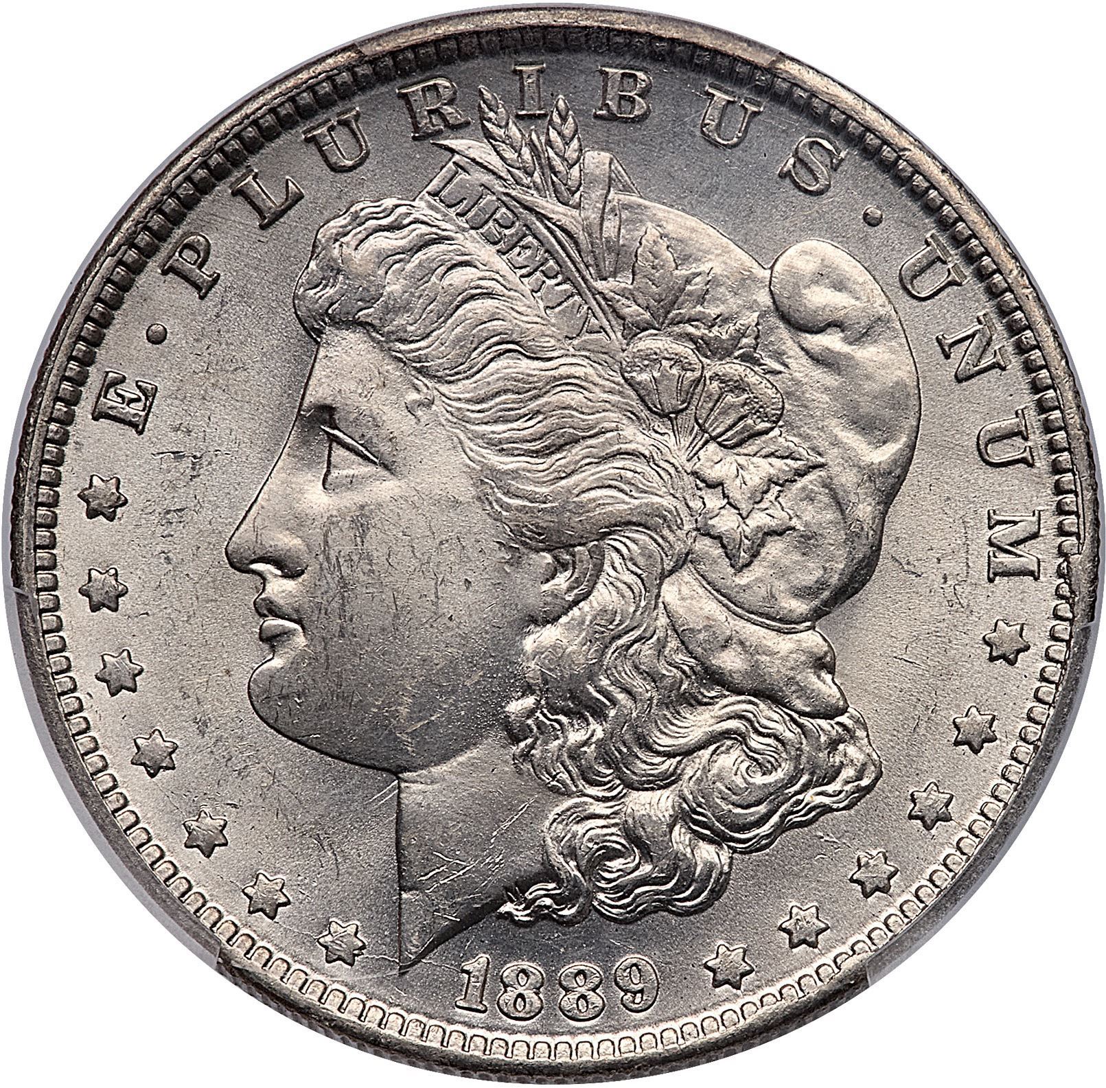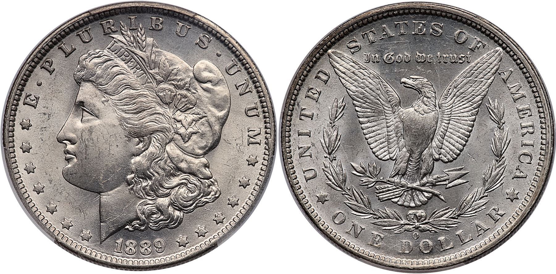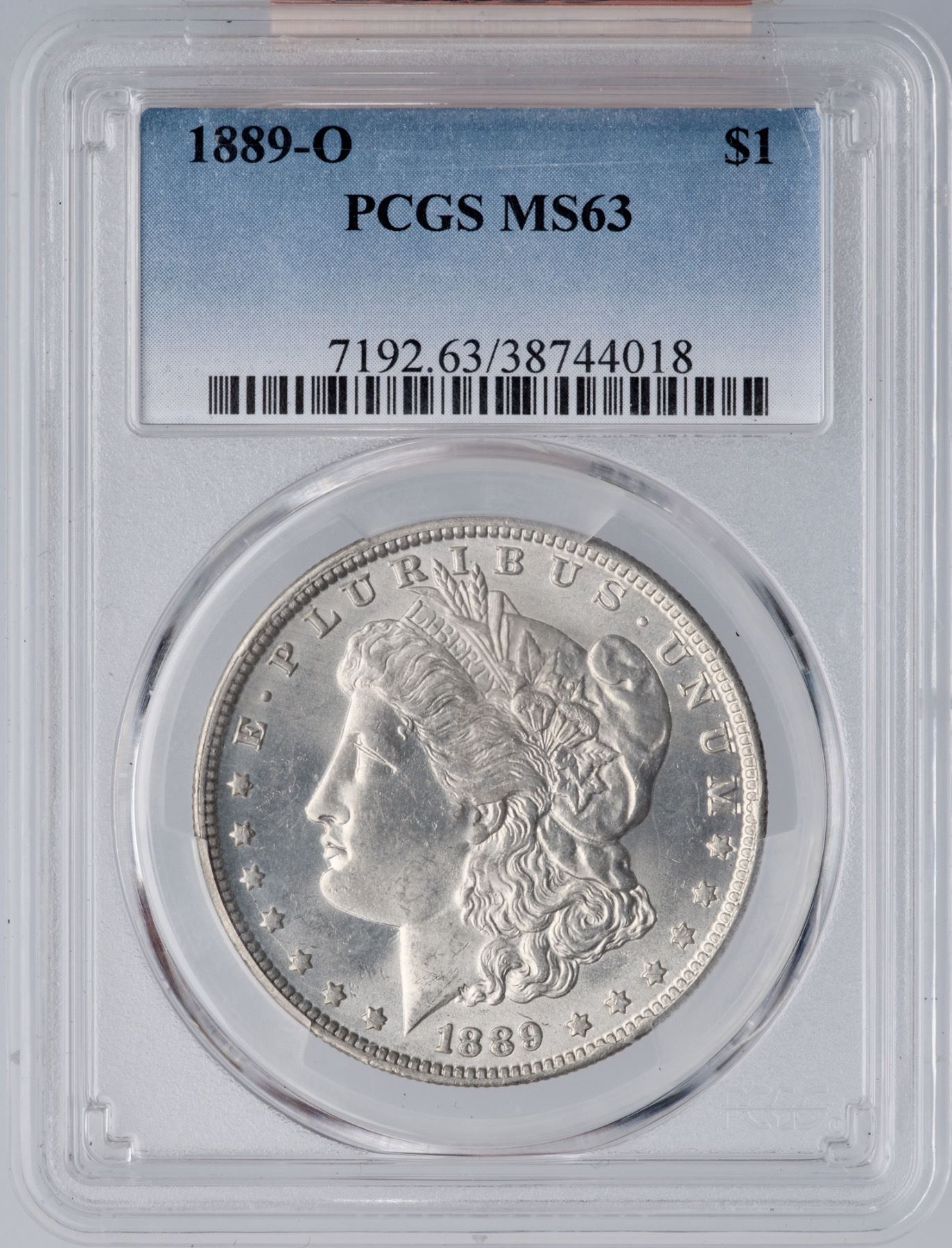 1889-O Morgan Silver Dollar PCGS MS63Frosty bright silver with semi-reflective surfaces.Certificate Number: Pedigree: Ex; Phil Davis