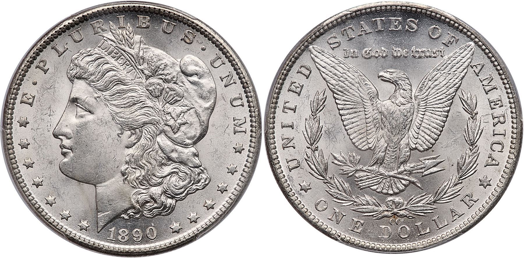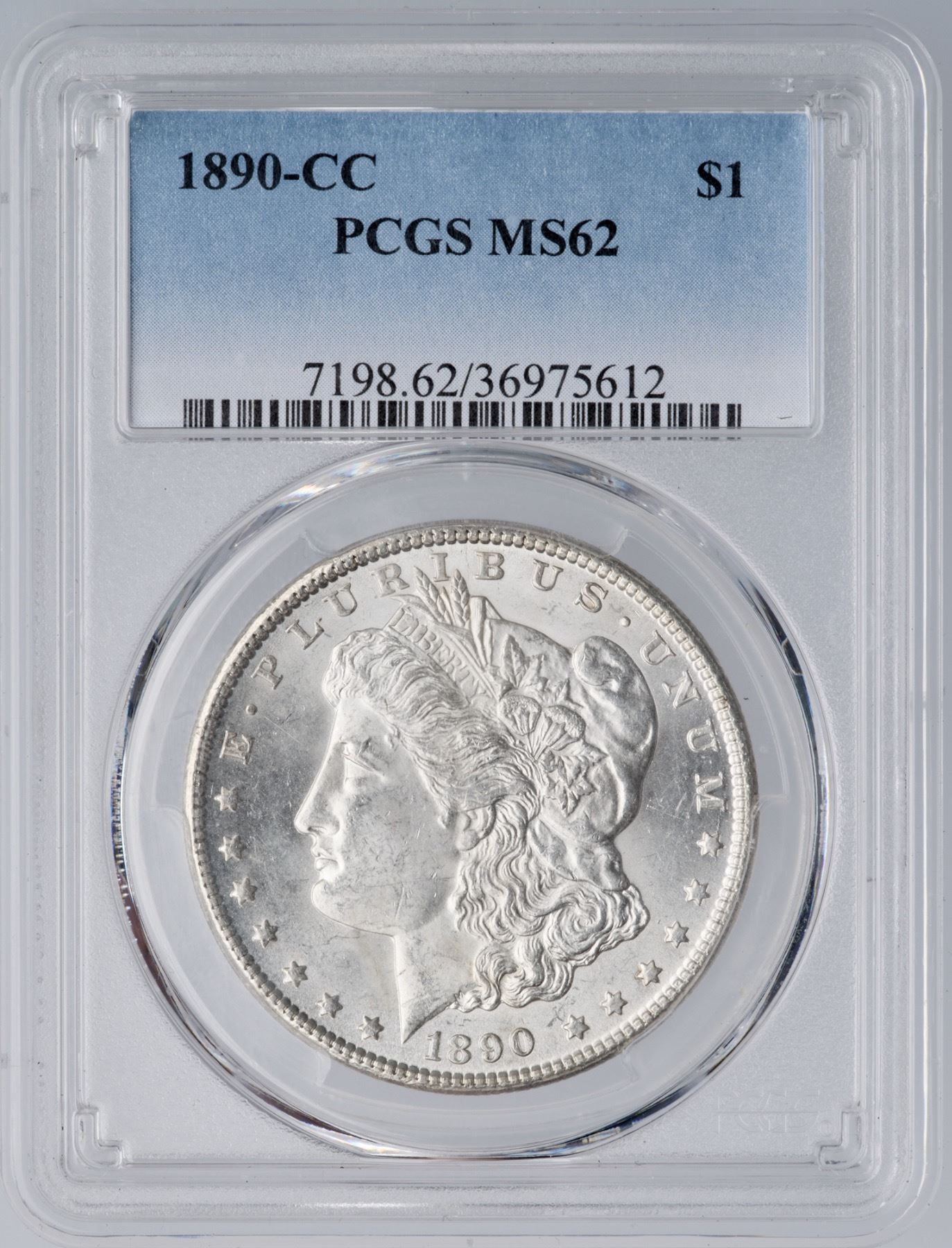 1890-CC Morgan Silver Dollar PCGS MS62Blast white on lustrous surfaces.Certificate Number: Pedigree: Ex; Phil Davis