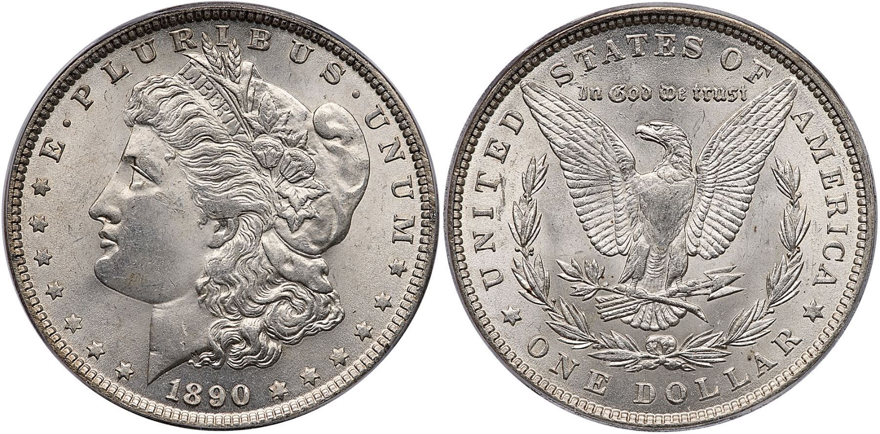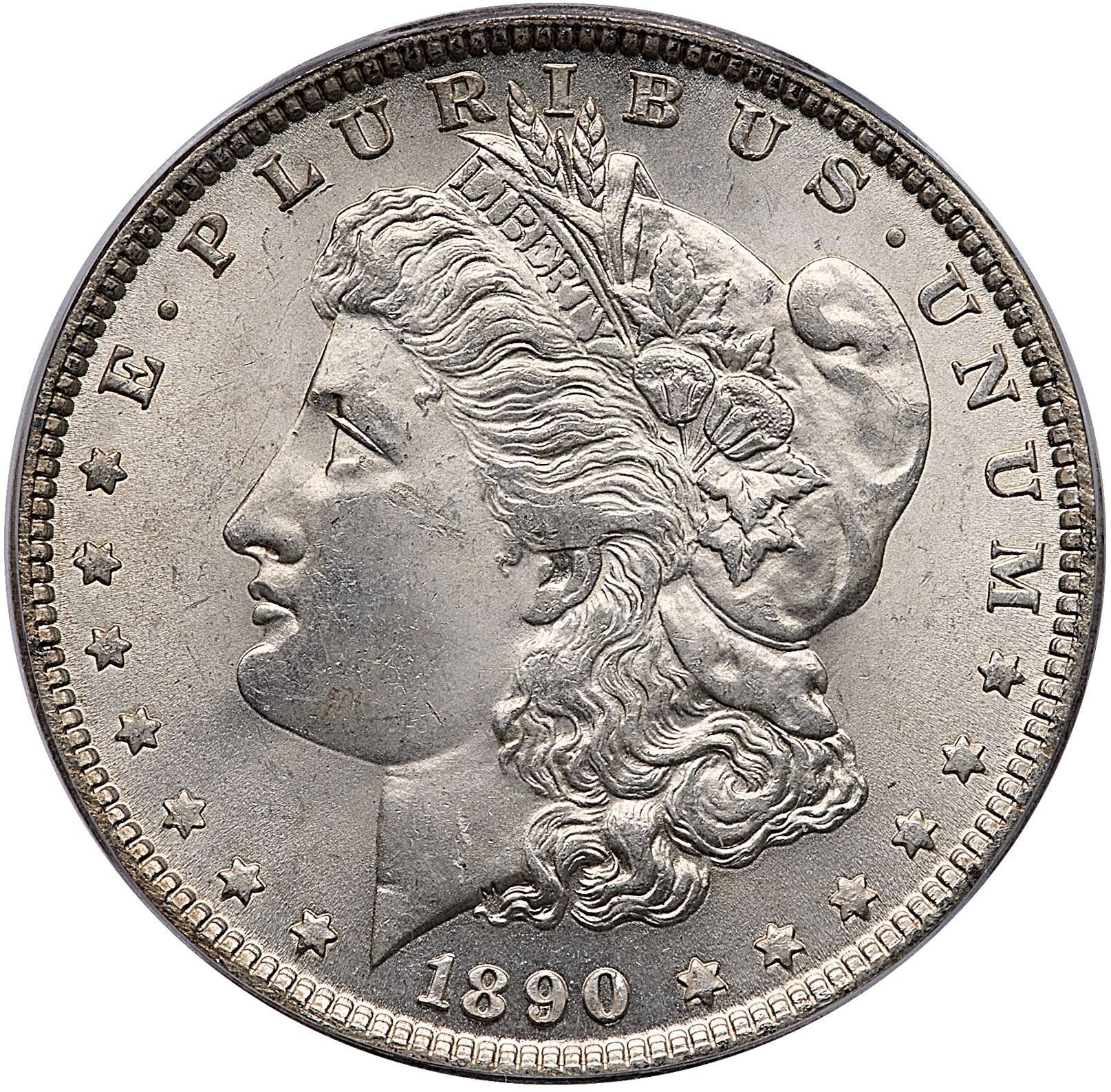 1890 Morgan Silver Dollar ICG MS65Satiny, highly lustrous bright silver. Certificate Number: Pedigree: Ex; Phil Davis