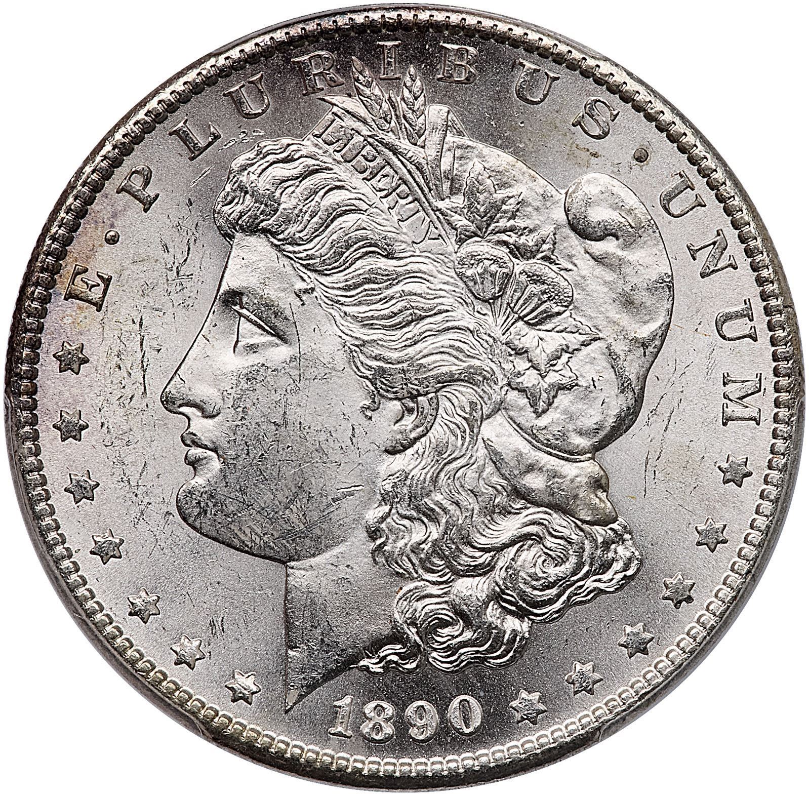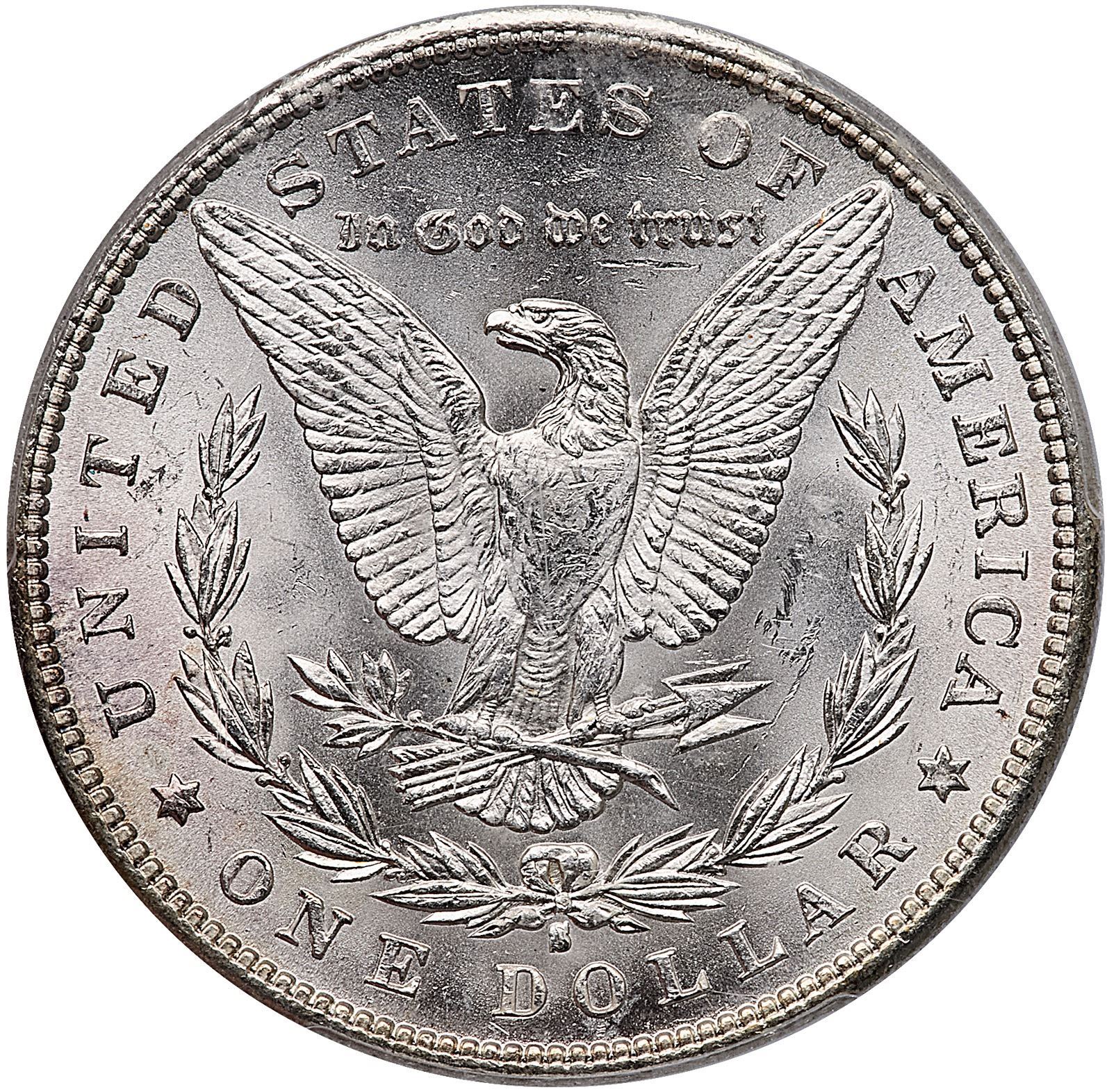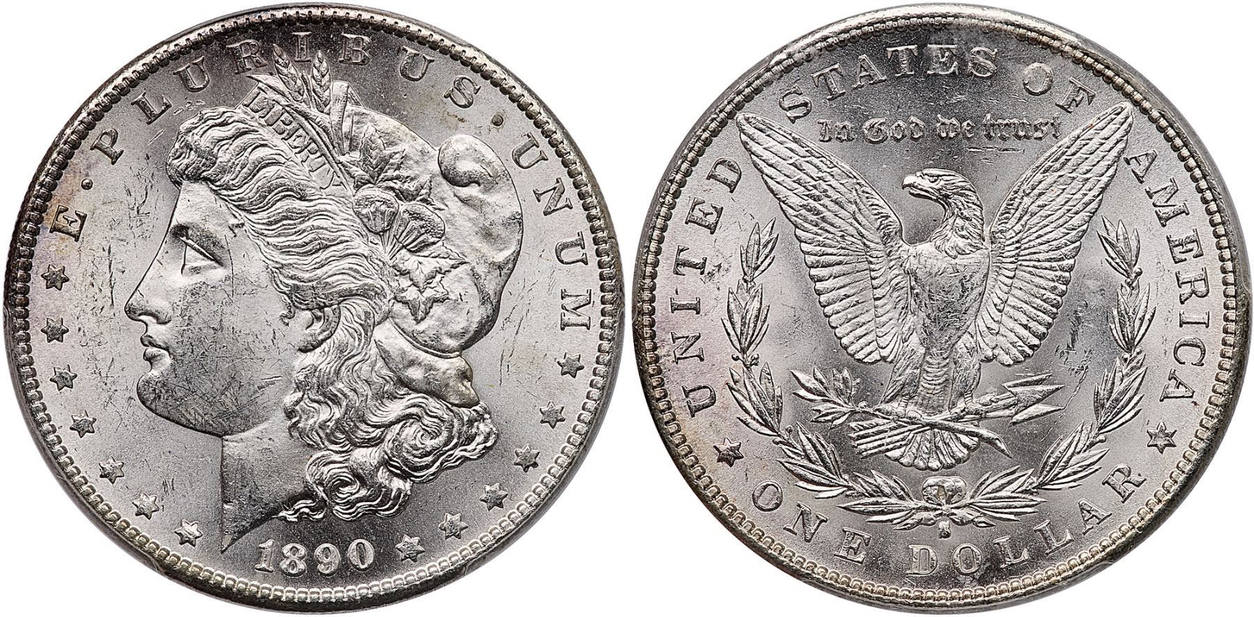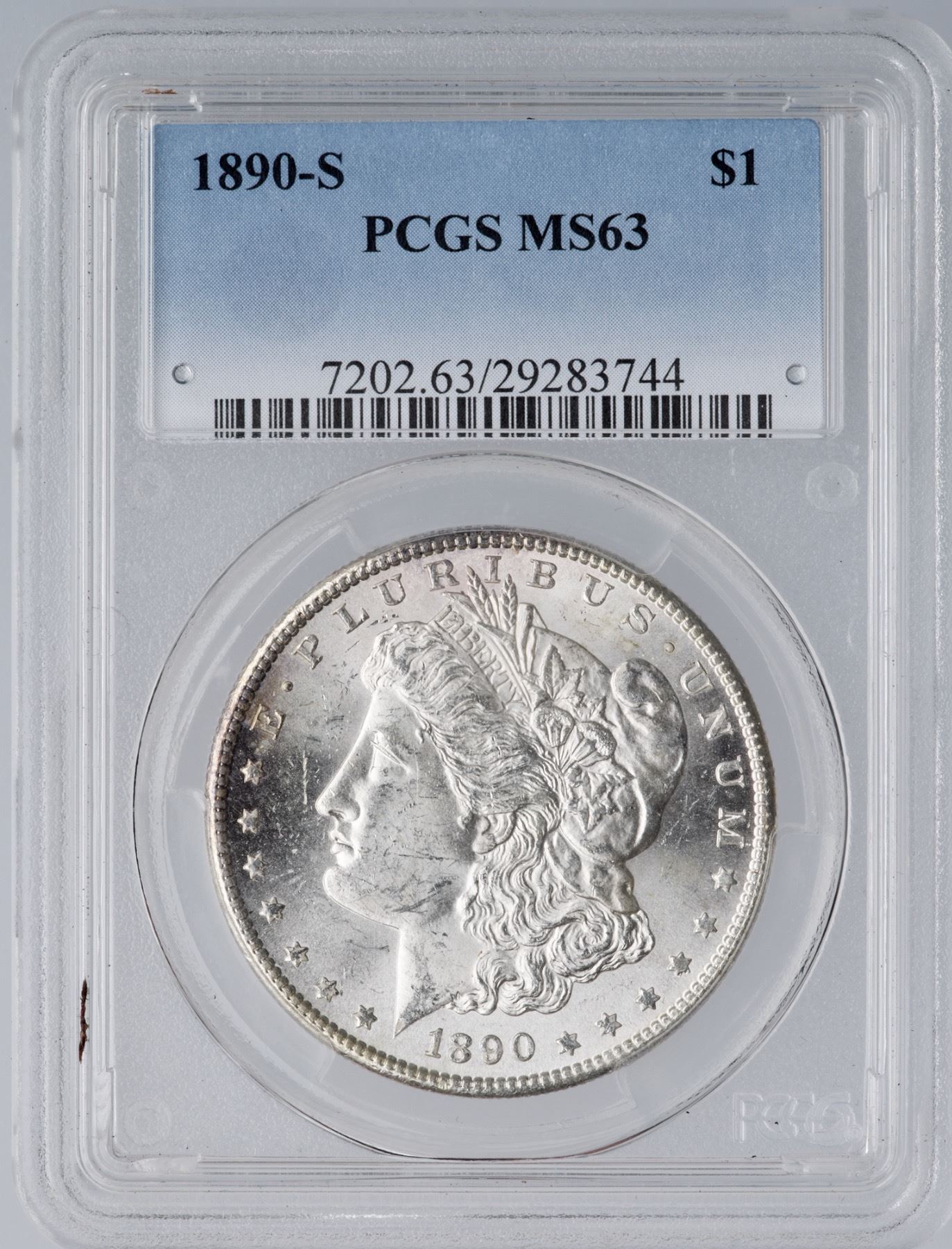 1890-S Morgan Silver Dollar PCGS MS63Brilliant blast white with just a touch of toning at E on the bverse and satiny luster covering the surfaces. Certificate Number: Pedigree: Ex; Phil Davis