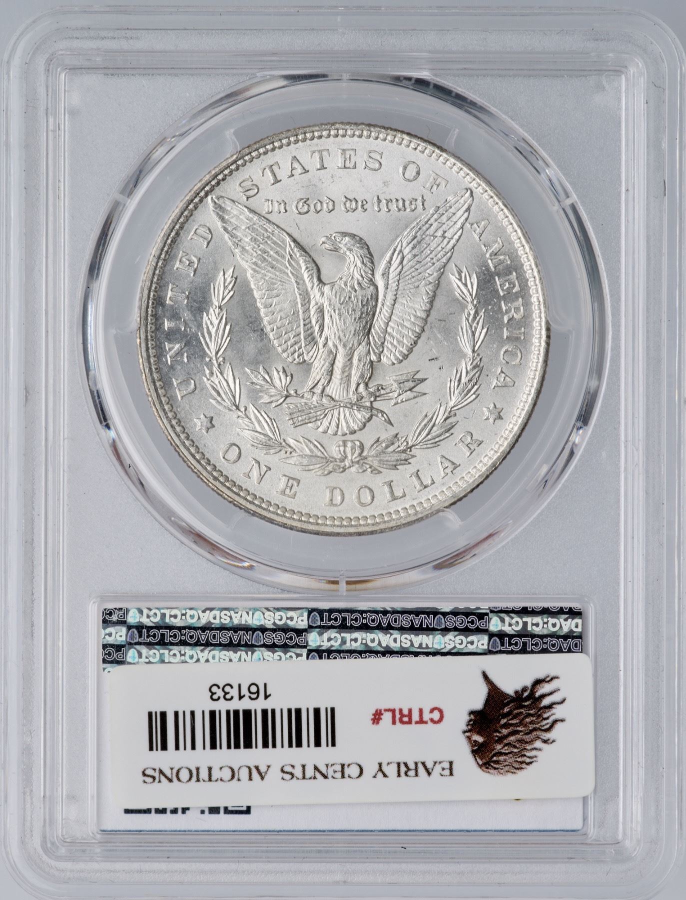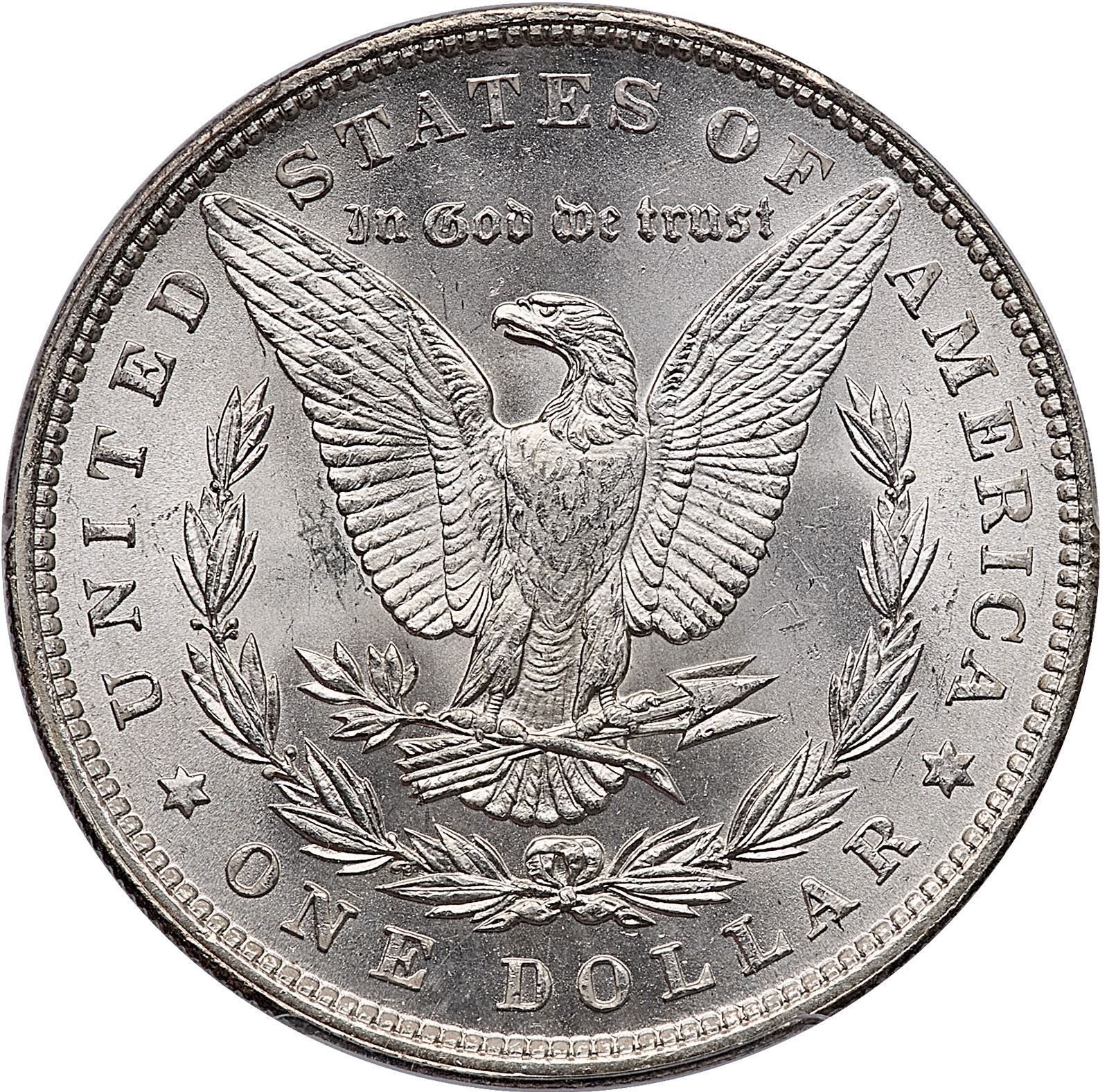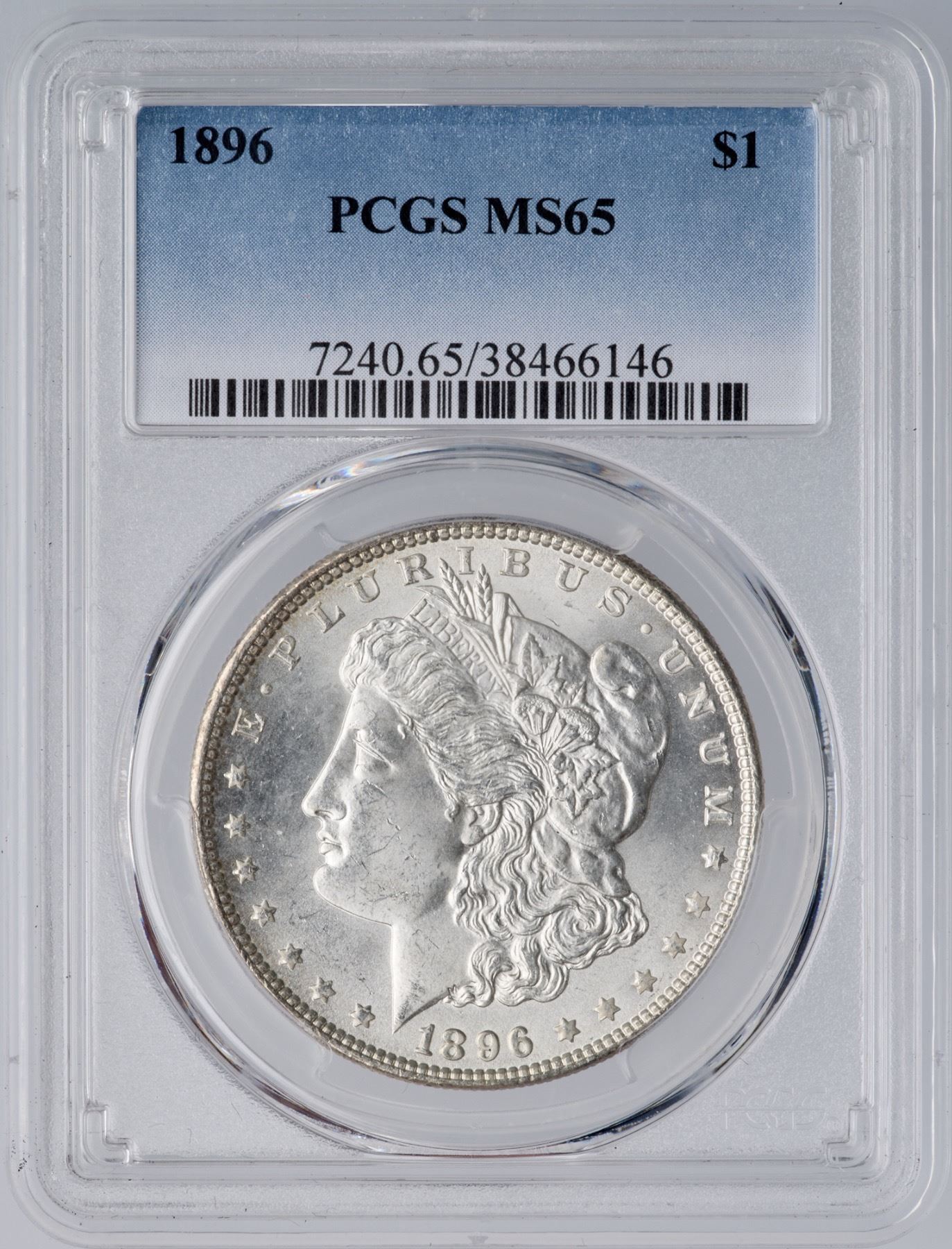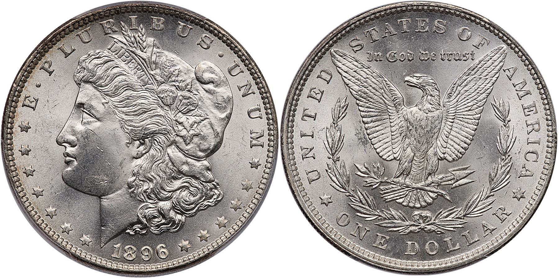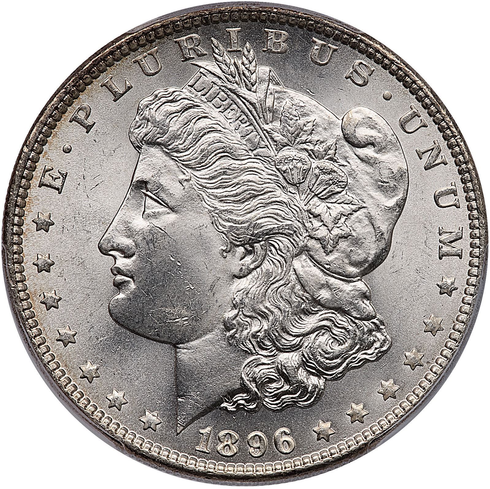 1896 Morgan Silver Dollar PCGS MS65Mostly bright, frosty silver with subtle golden tones around the peripheries. Certificate Number: Pedigree: Ex; Phil Davis