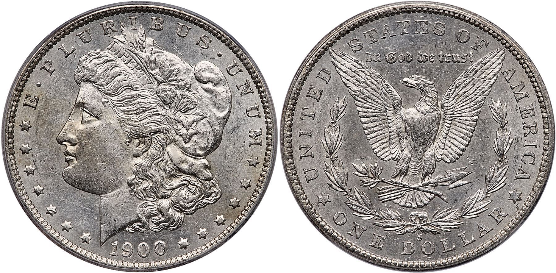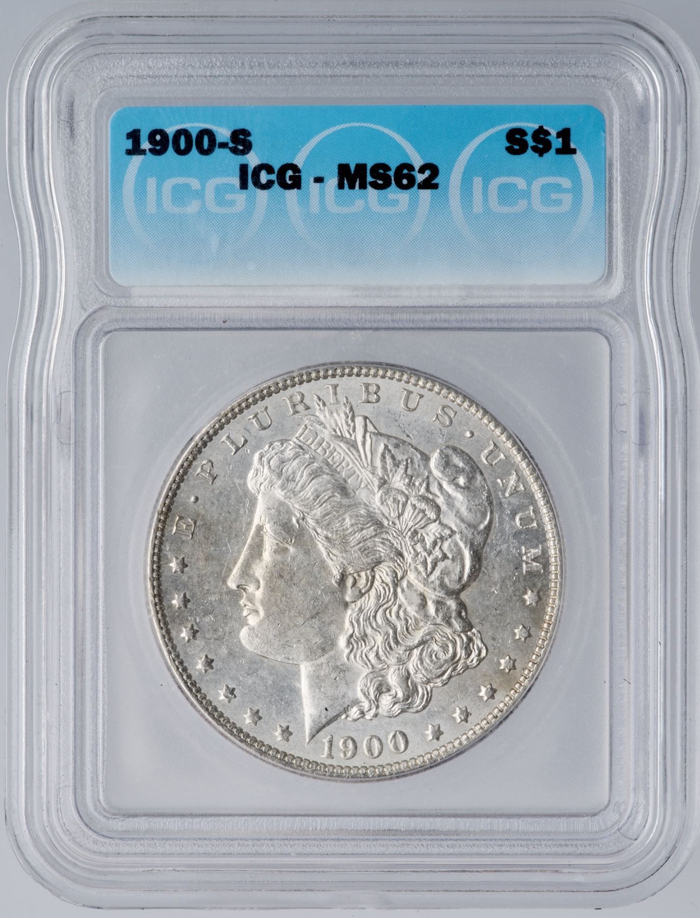 1900-S Morgan Silver Dollar ICG MS62Bright silver with very subtle toning on the obverse. Semi-reflective fields.Certificate Number: Pedigree: Ex; Phil Davis
