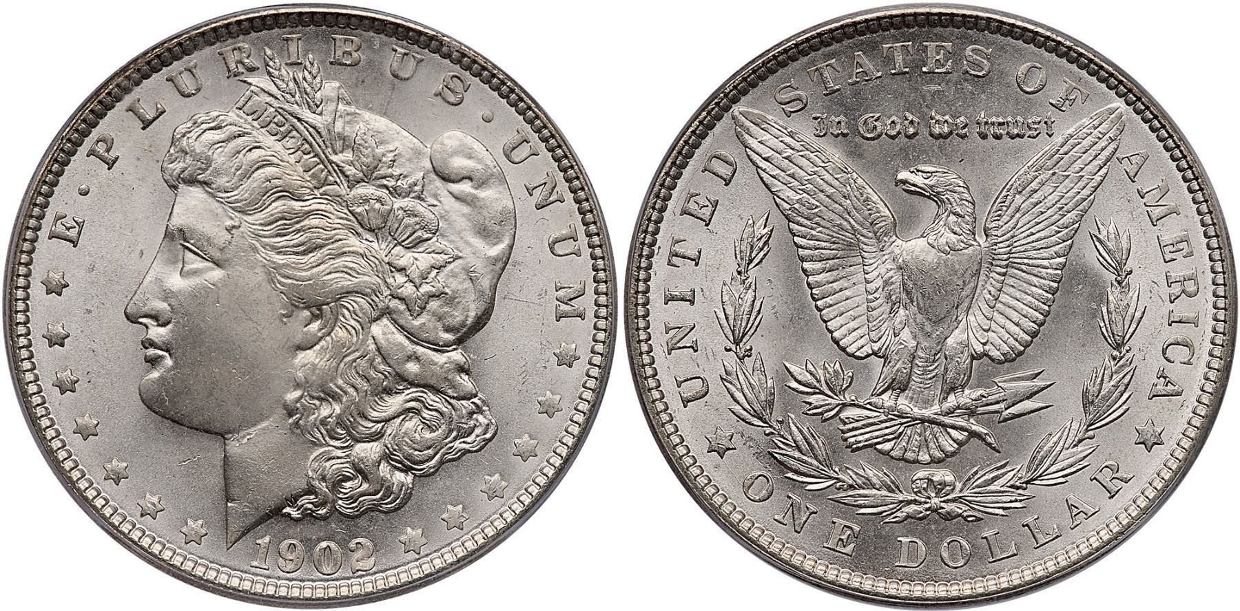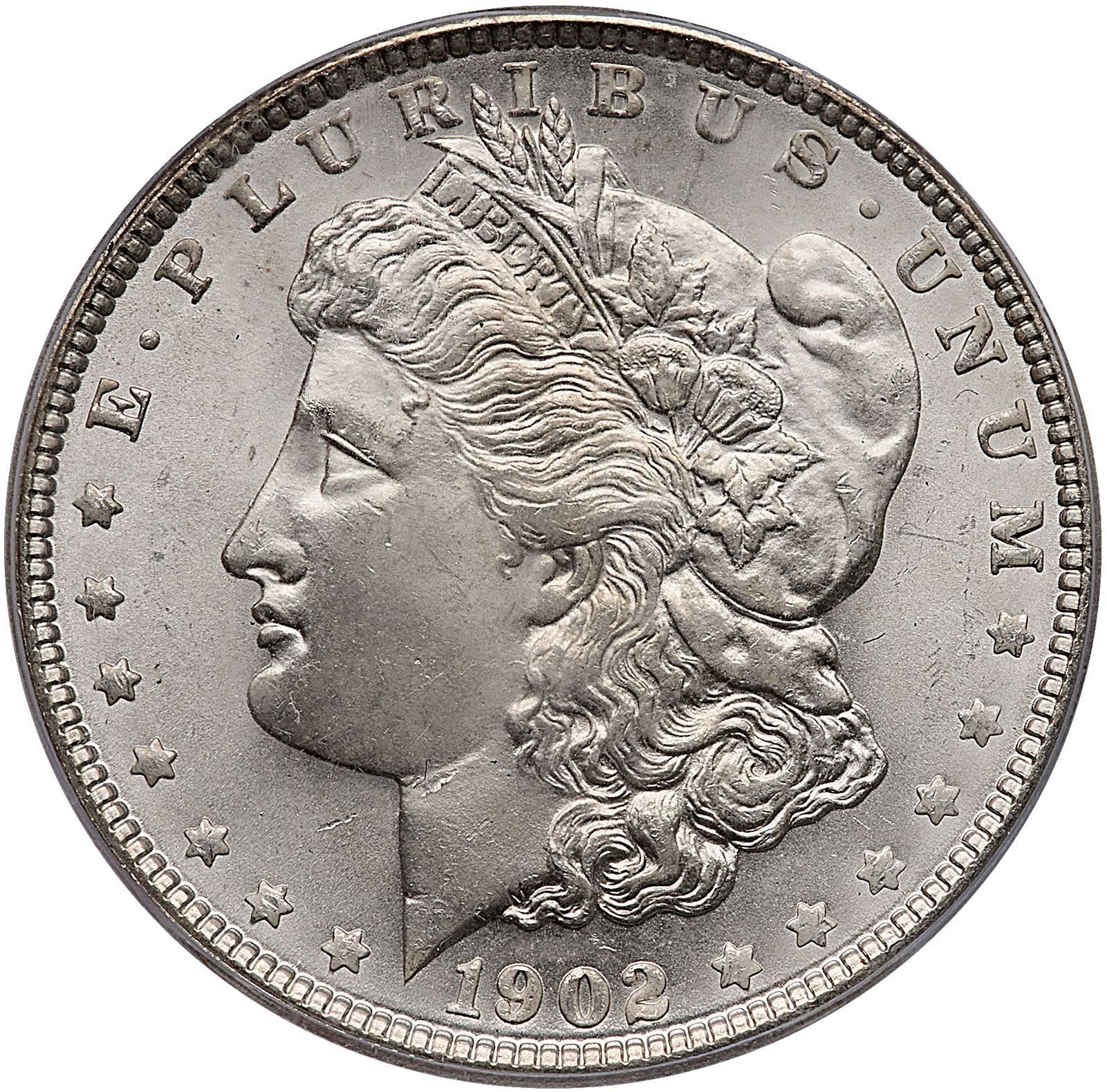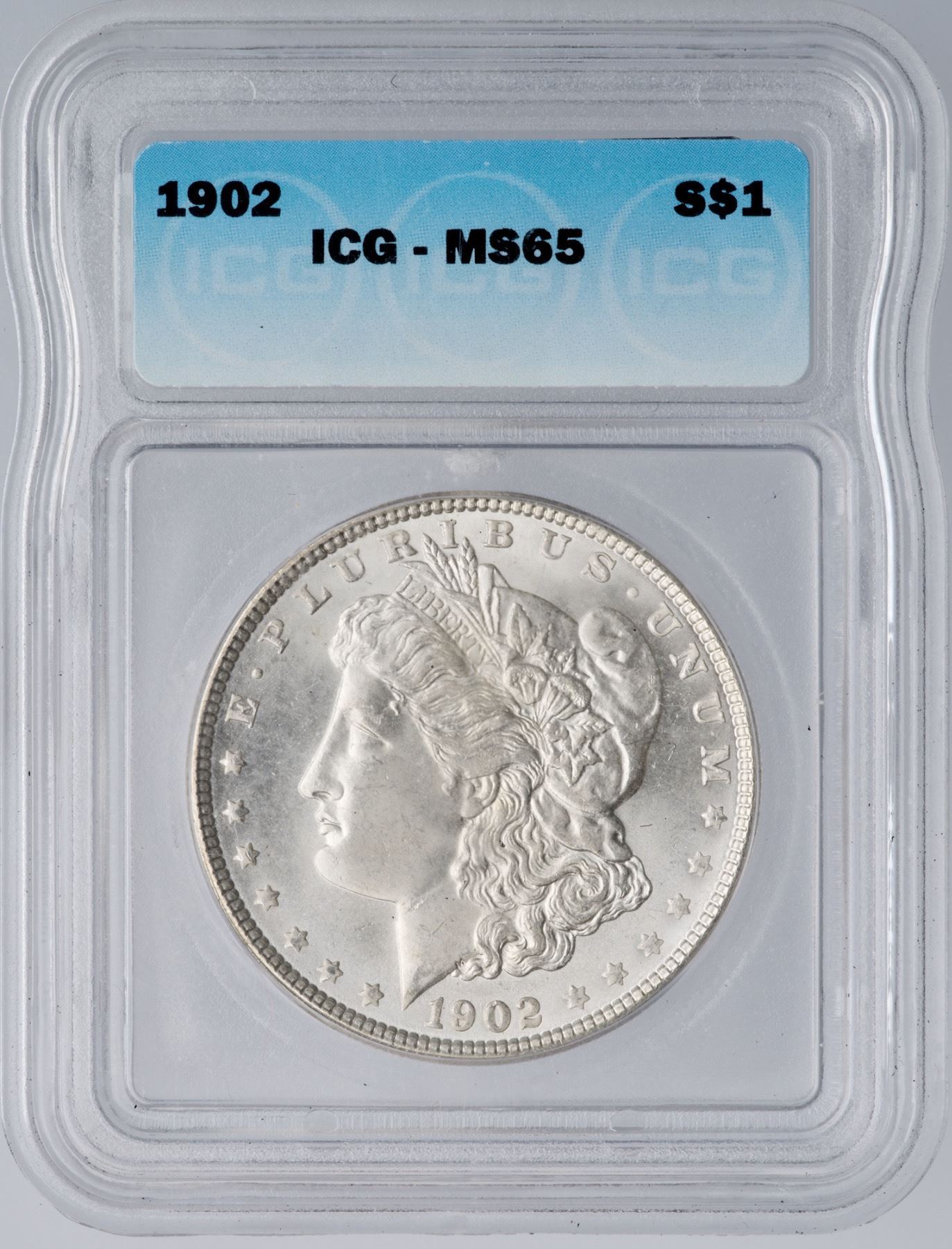 1902 Morgan Silver Dollar ICG MS65Lightly mellowed bright silver covered in satiny luster.Certificate Number: Pedigree: Ex; Phil Davis