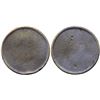 A stage II planchet with widely upset rims. Chocolate brown and steel. The planchet is slightly rough showing a few chips and fine scratches in the fields and a rim dent. The wider upset to the rims are consistent with planchets used to strike the Mature Head cents from 1843 through 1857. Weight 157.1 grains, diameter 27.8 millimeters.