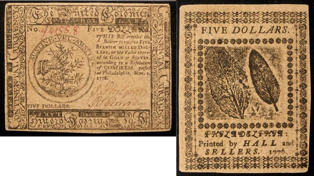 Continental Currency. CC-50, November 2, 1776. Five Dollars. PMGChoice AU50. Nicely inked