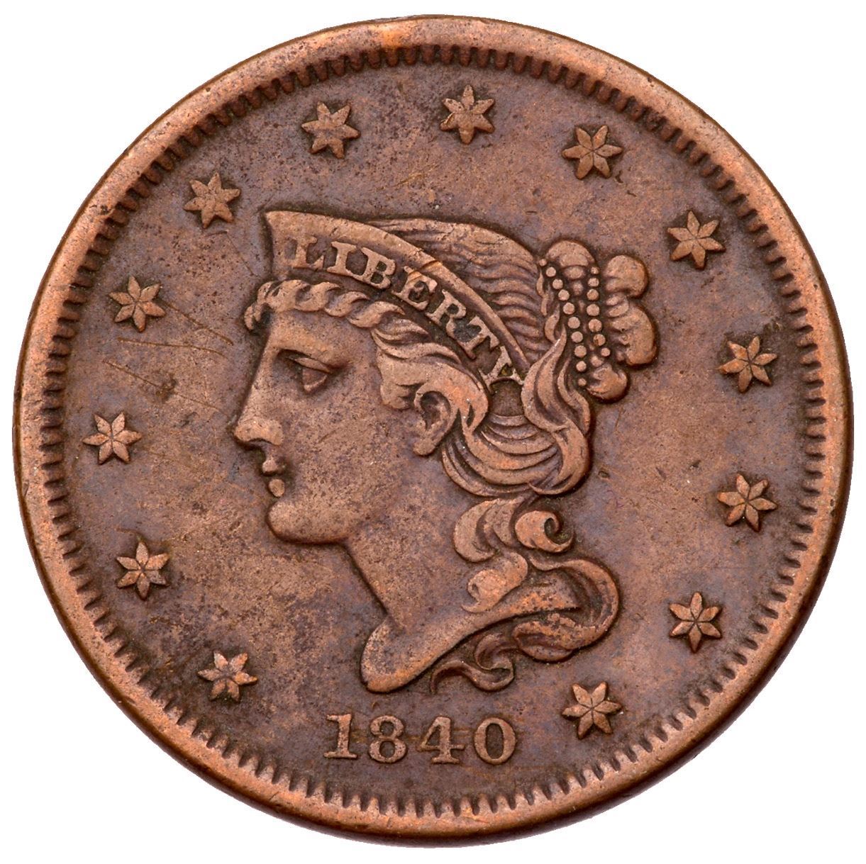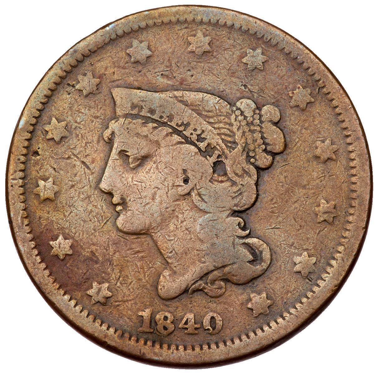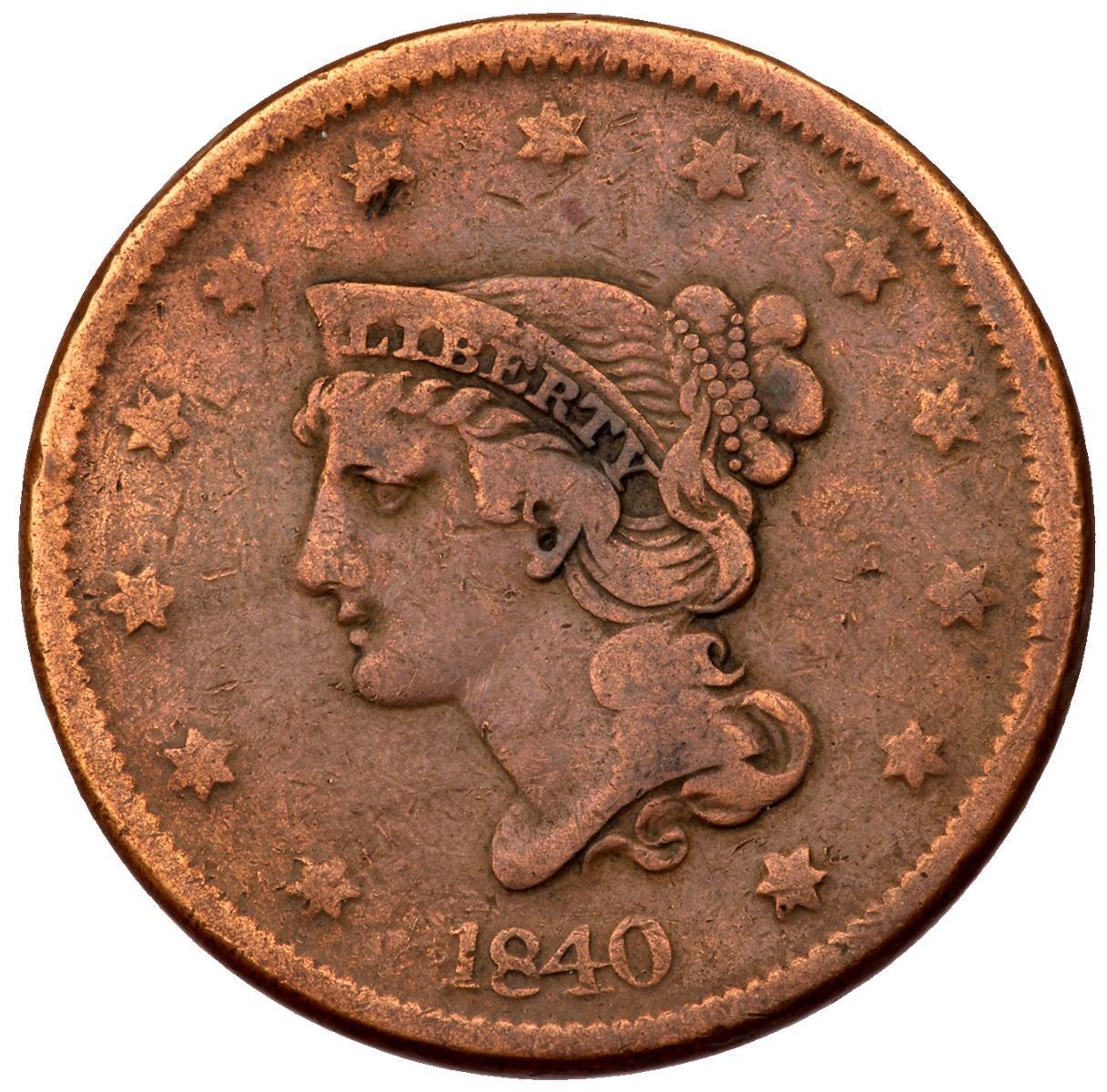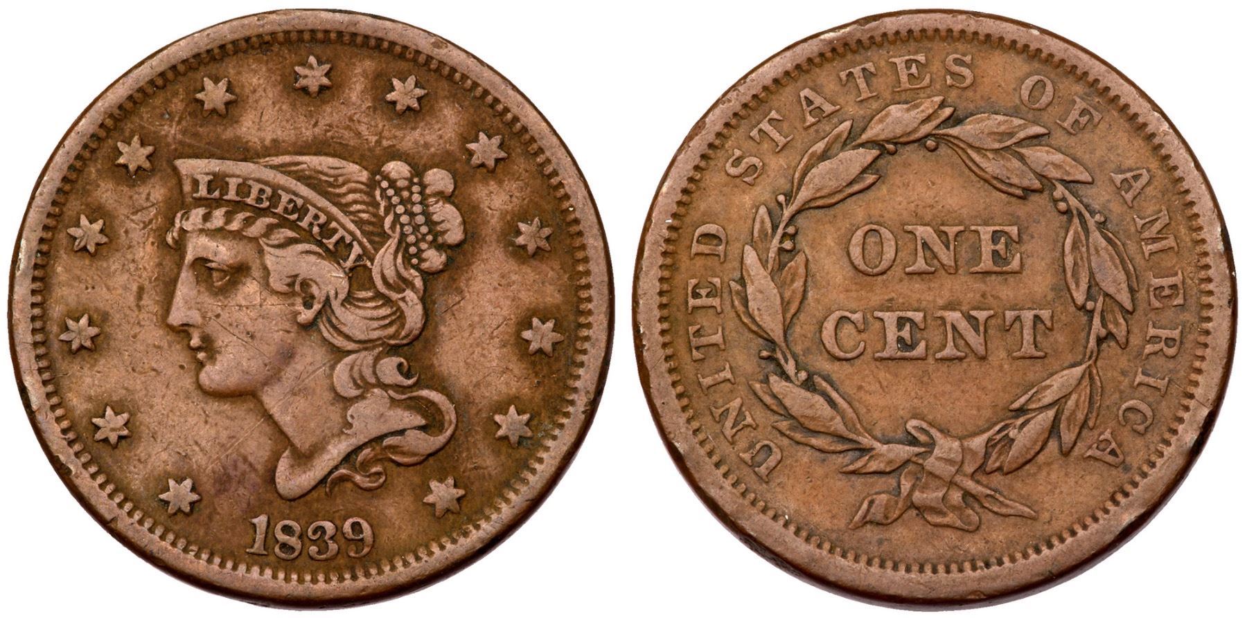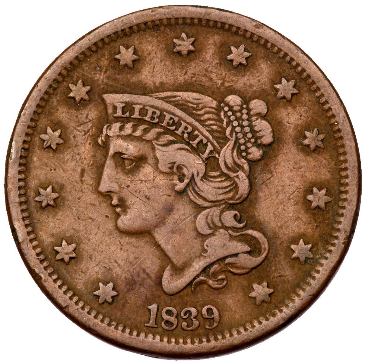 Group of 4 Braided Hair Cents 1839-1840Lot of 4 Coins. Includes an 1839 Head of 1840, an 1840 Large Date, an 1840 Small Date, and an 1840/18. All are sharper with minor surface issues, grading VG to Fine.Certificate Number: Pedigree:
