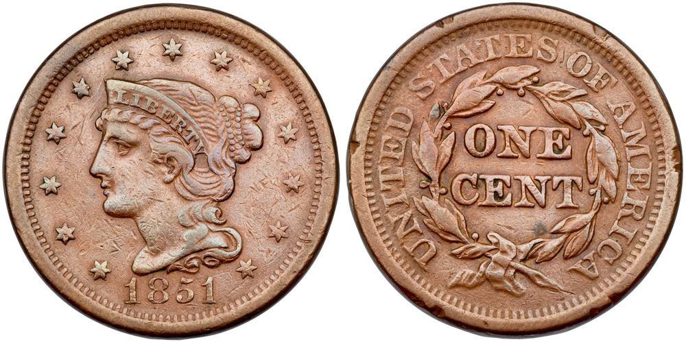 Includes 1851 N-38 R1 F12, 1853 N-24 R2 VF20, 1855 N-9 R1 Knob-on-Ear MDS VG10, 1856 N-14 R1 Italic 5 F15, and 1856 N-17 R2 F15. Most are sharper with defects. Lot of 5 coins. From the Lucien Birkler Collection (includes the Birkler collection envelopes)