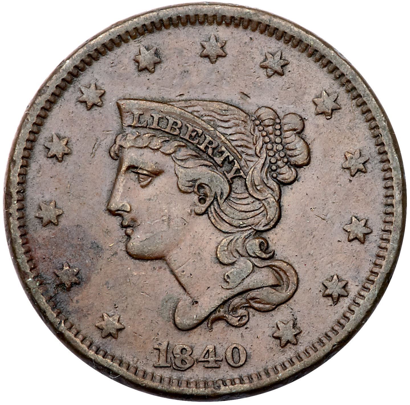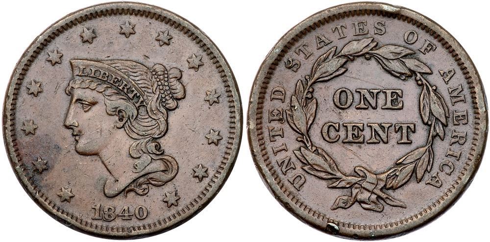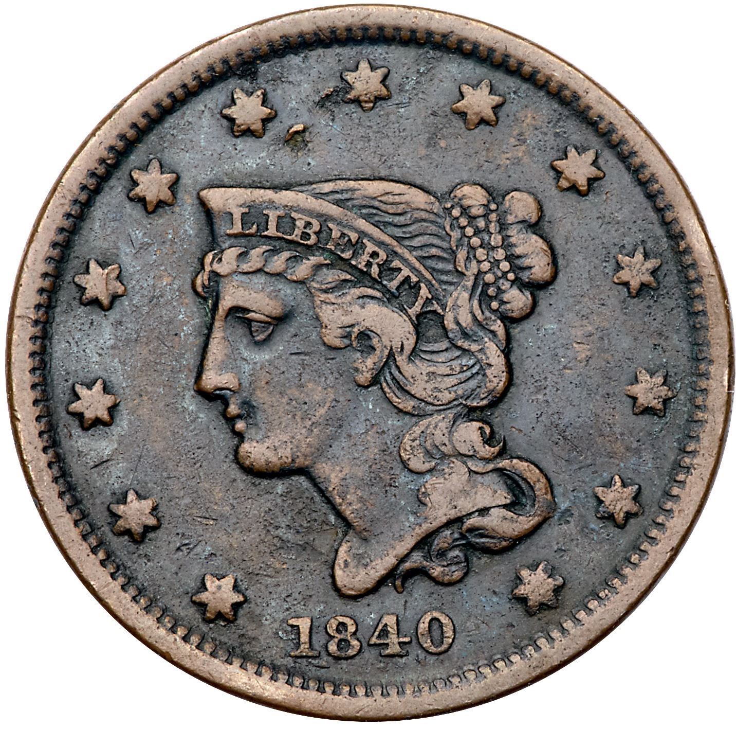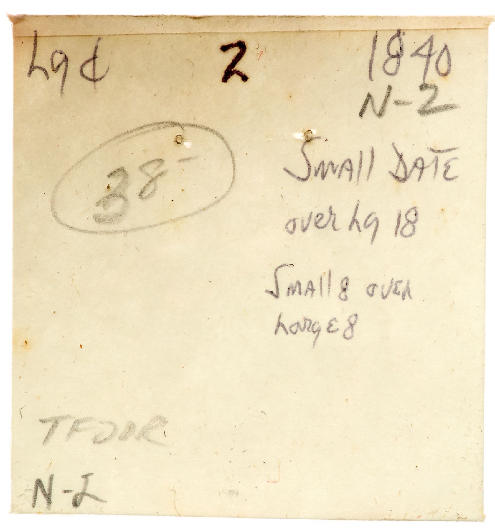 Group of Five 1840 Cents grading F15Includes N-2 R2 Small 18 over Large 18, N-4 R3- Small Date, N-5 R1 Large Date, N-6 R1 Large Date with Repunched 40, and N-12 R2 Small Date. Some are sharper with marks but all are glossy brown and chocolate with a strong date. Lot of 5 coins.Pedigree: From the Fred H. Borcherdt Collection