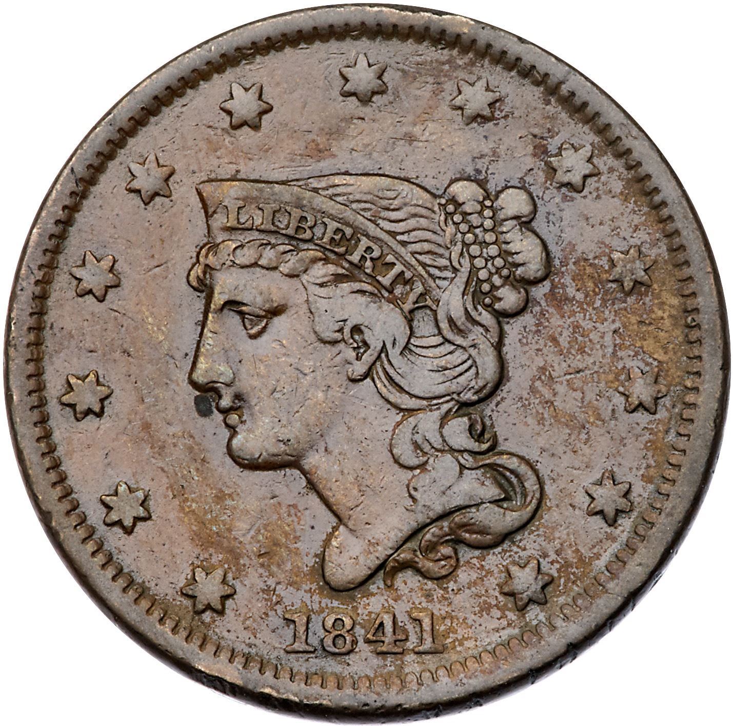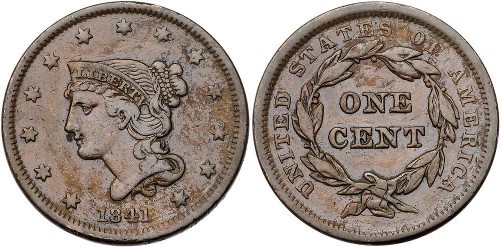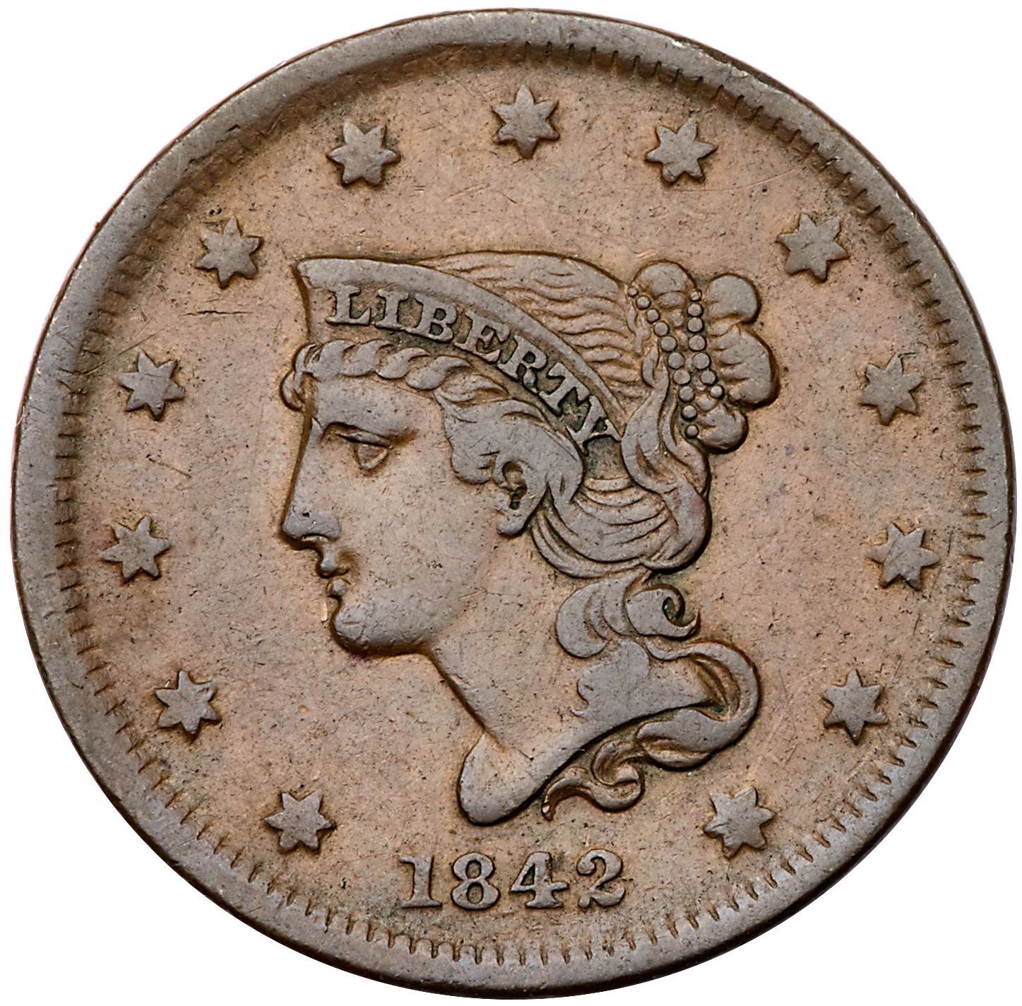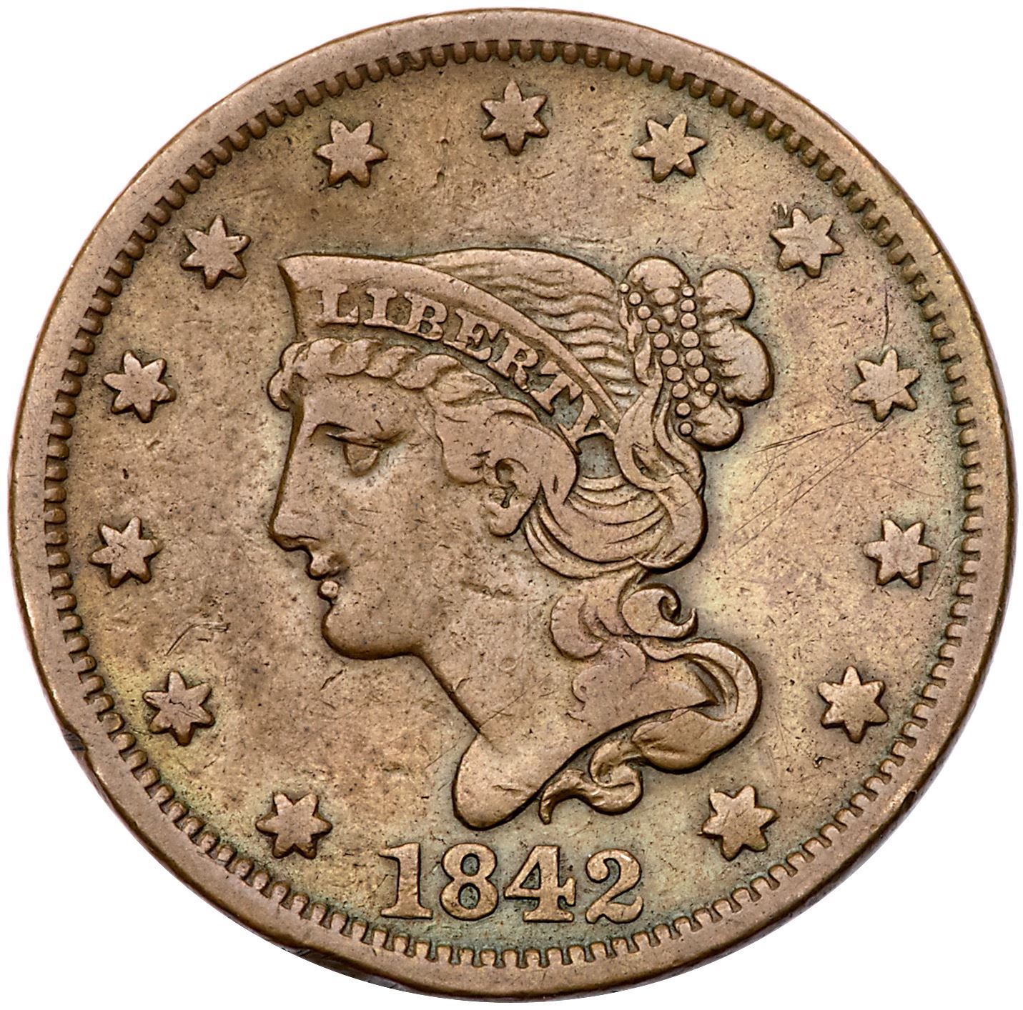 Group of Five 1841 & 1842 Cents grading F15Includes 1841 N-3 R2, 1842 N-2 R1 Small Date, 1842 N-6 R1 (2 pieces), and 1842 N-7 R3+. Some are sharper with marks but all are glossy brown and chocolate with a strong date. Lot of 5 coins.Pedigree: From the Fred H. Borcherdt Collection