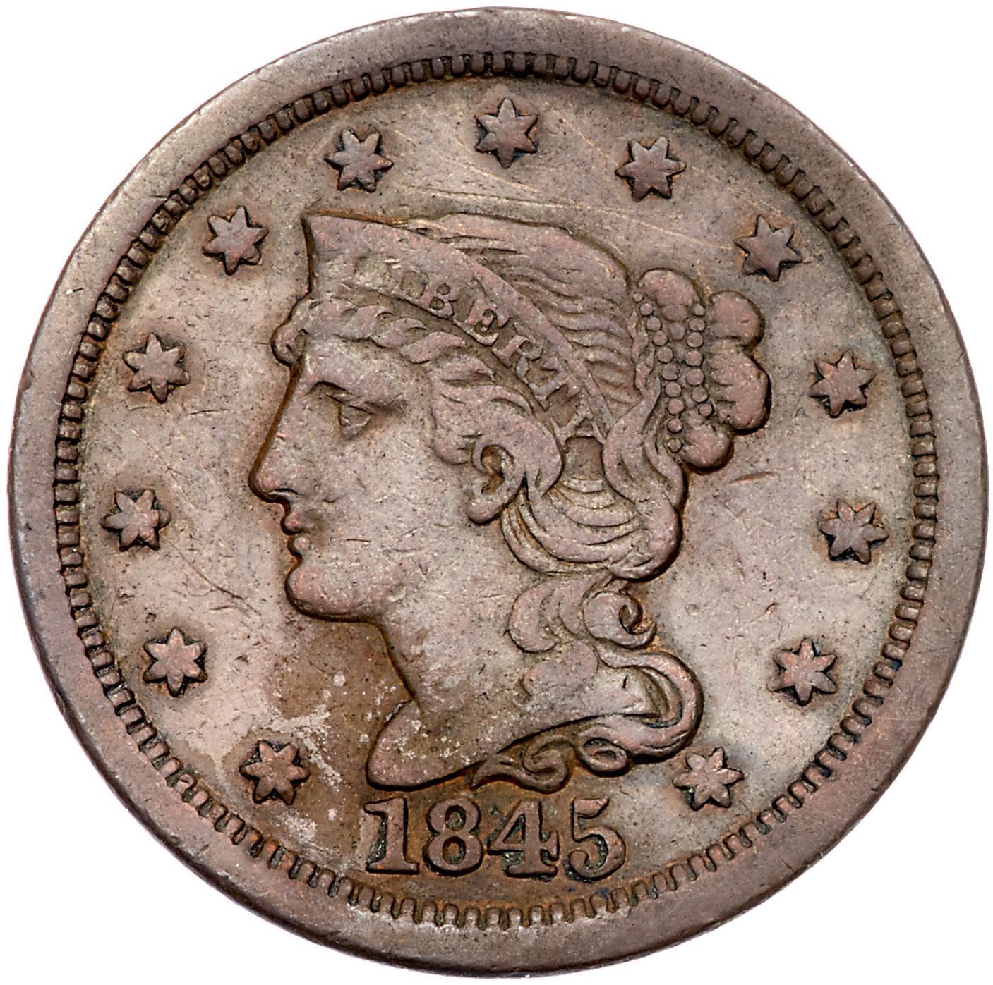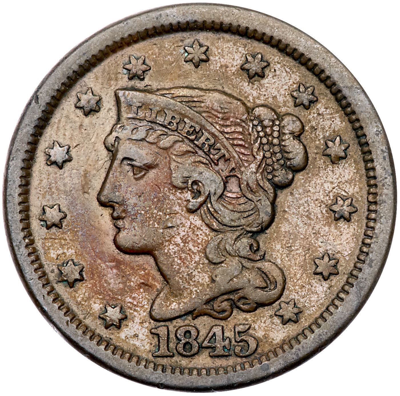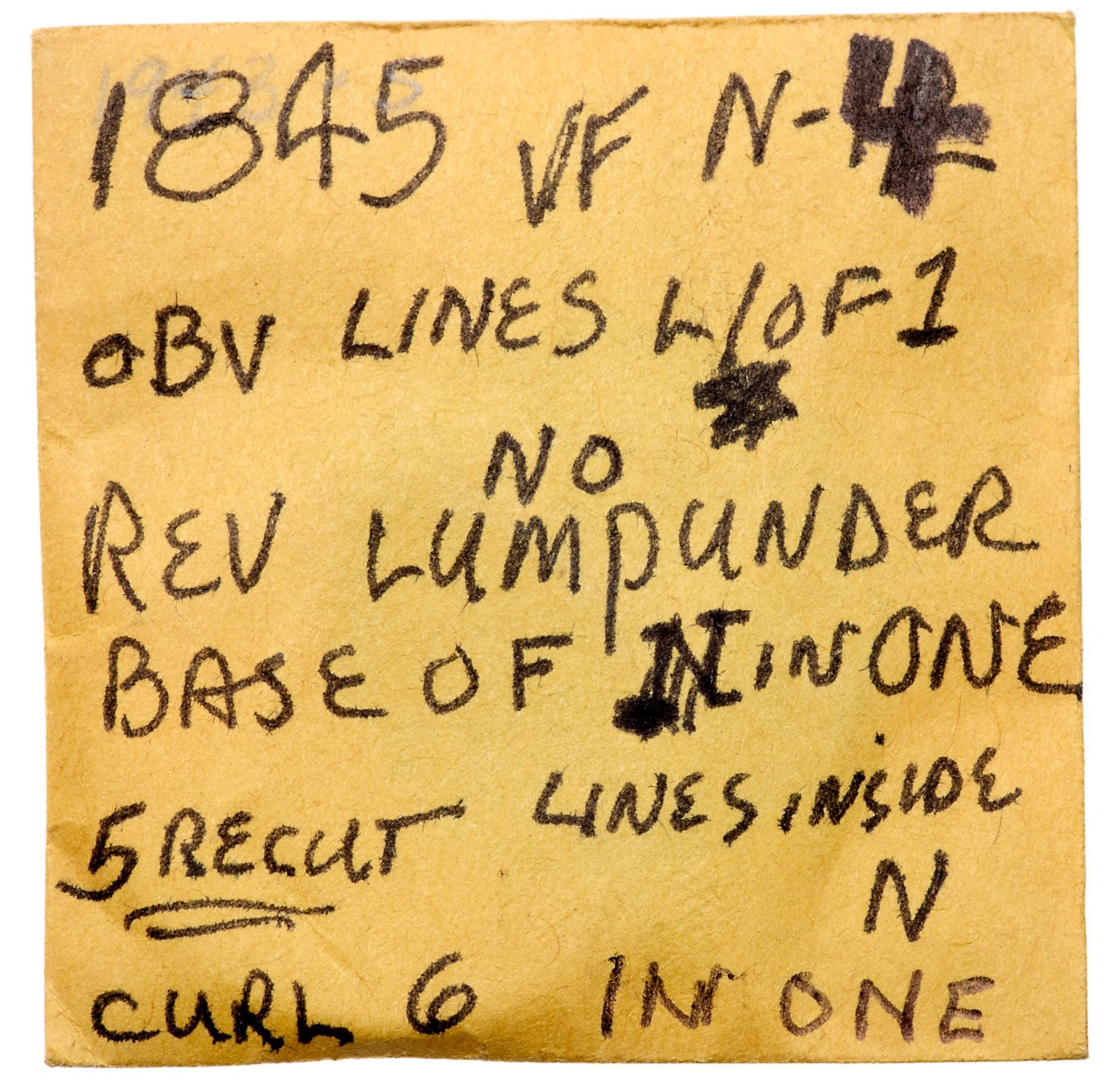 Group of Five 1845 & 1846 Cents grading F15Includes 1845 N-4 R1 Repunched 5, 1845 N-11 R3, 1845 N-12 R3+, 1846 N-1 R1 Repunched Date, and 1846 N-4 R1 Boldly Repunched Date. Some are sharper with marks but all are glossy brown and chocolate with a strong date. Lot of 5 coins.Pedigree: From the Fred H. Borcherdt Collection