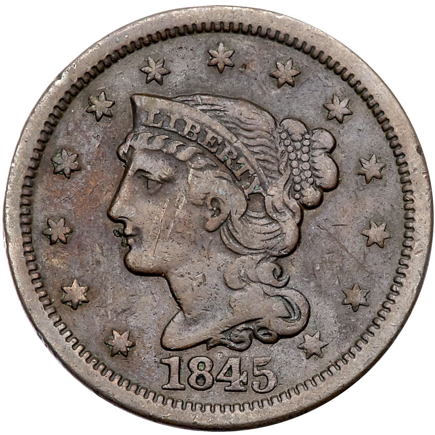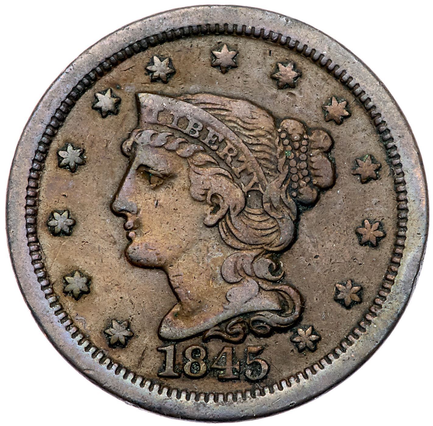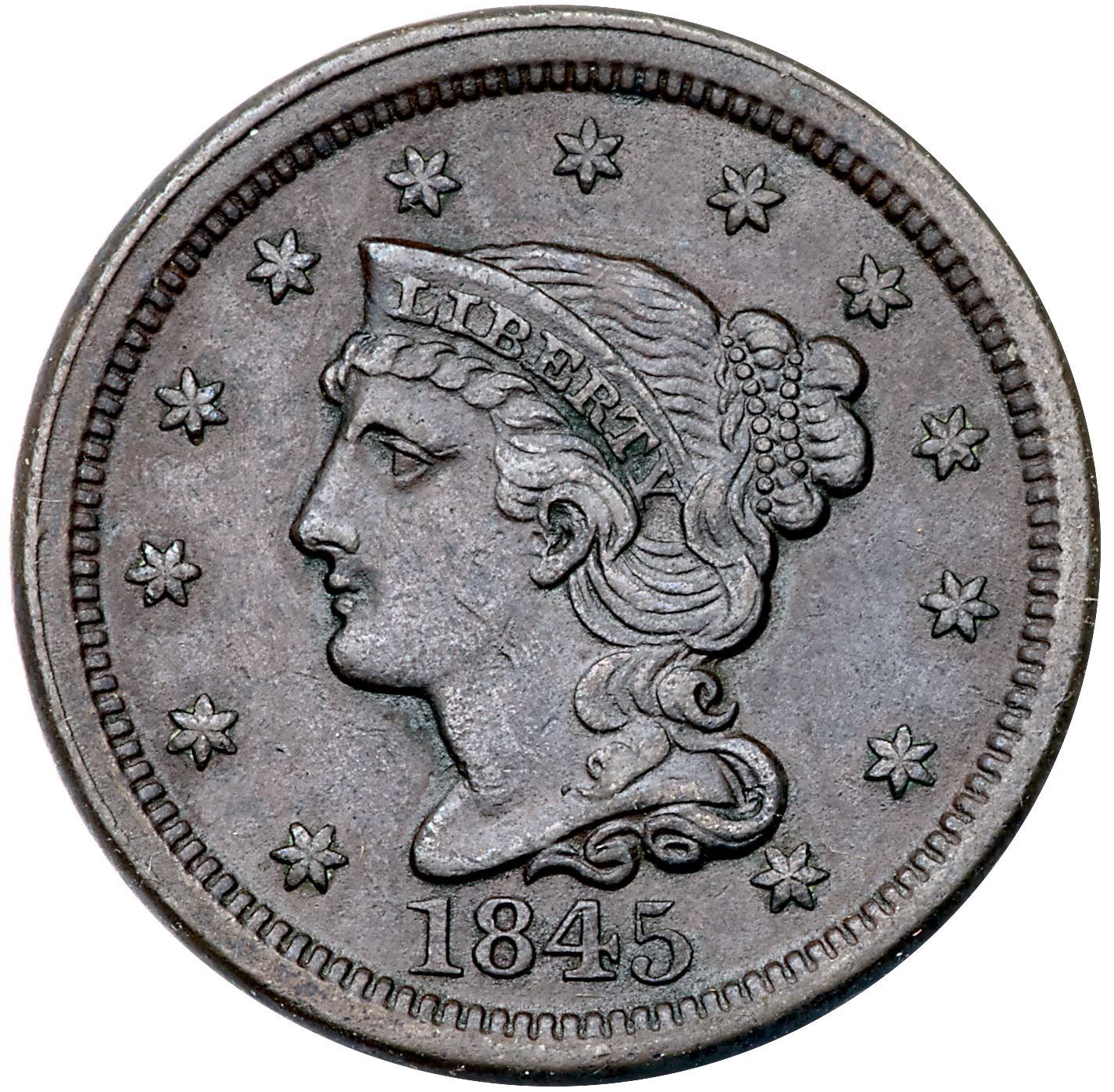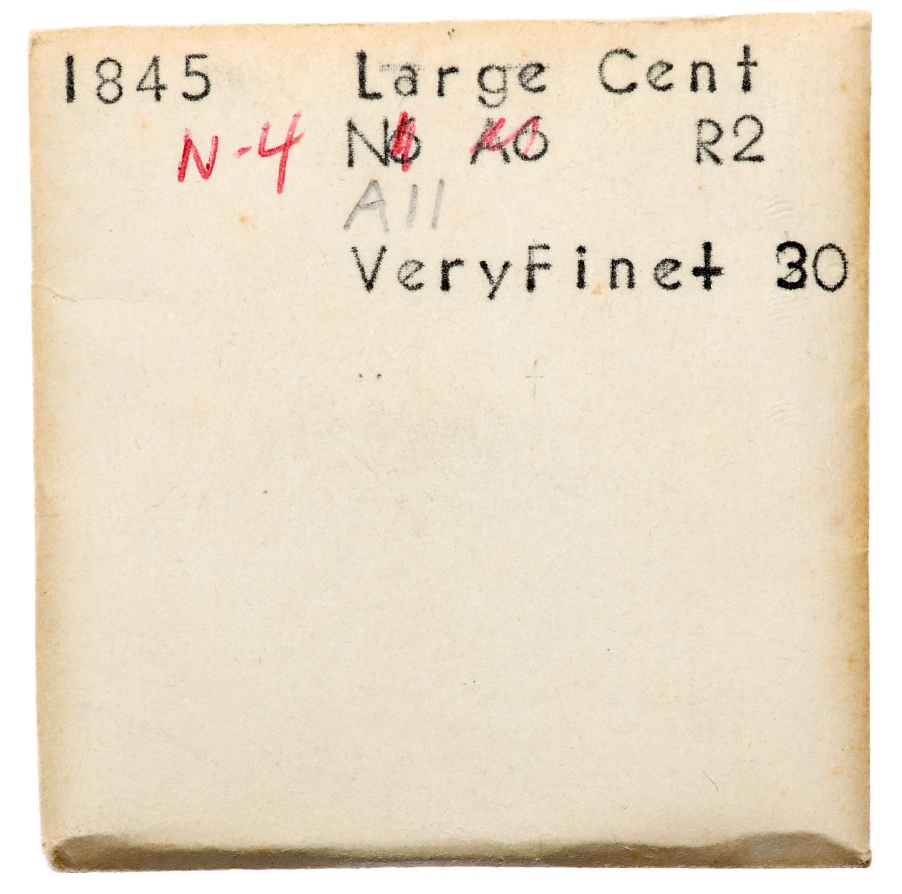 Group of Five 1845 Cents grading F15Includes N-3 R4, N-4 R1 Repunched 5, N-6 R2, N-10 R3-, and N-12 R3+. Some are sharper with marks but all are glossy brown and chocolate with a strong date. Lot of 5 coins.Pedigree: From the Fred H. Borcherdt Collection