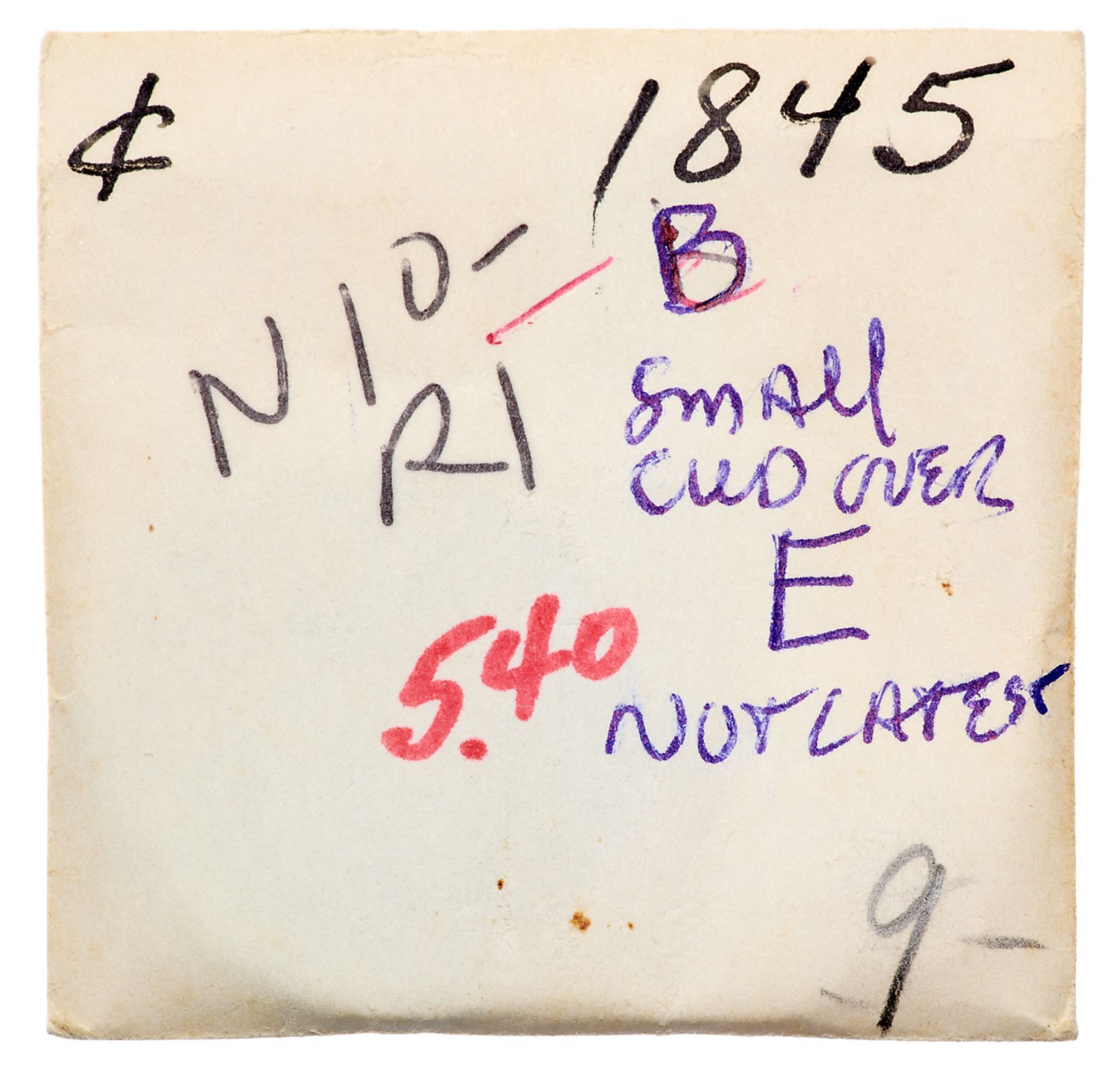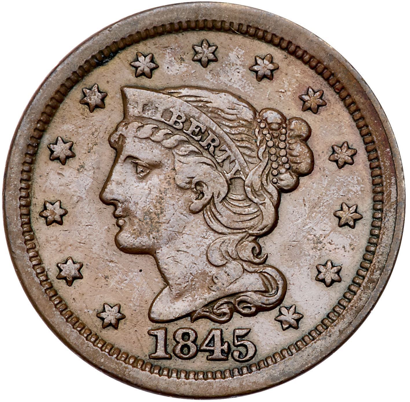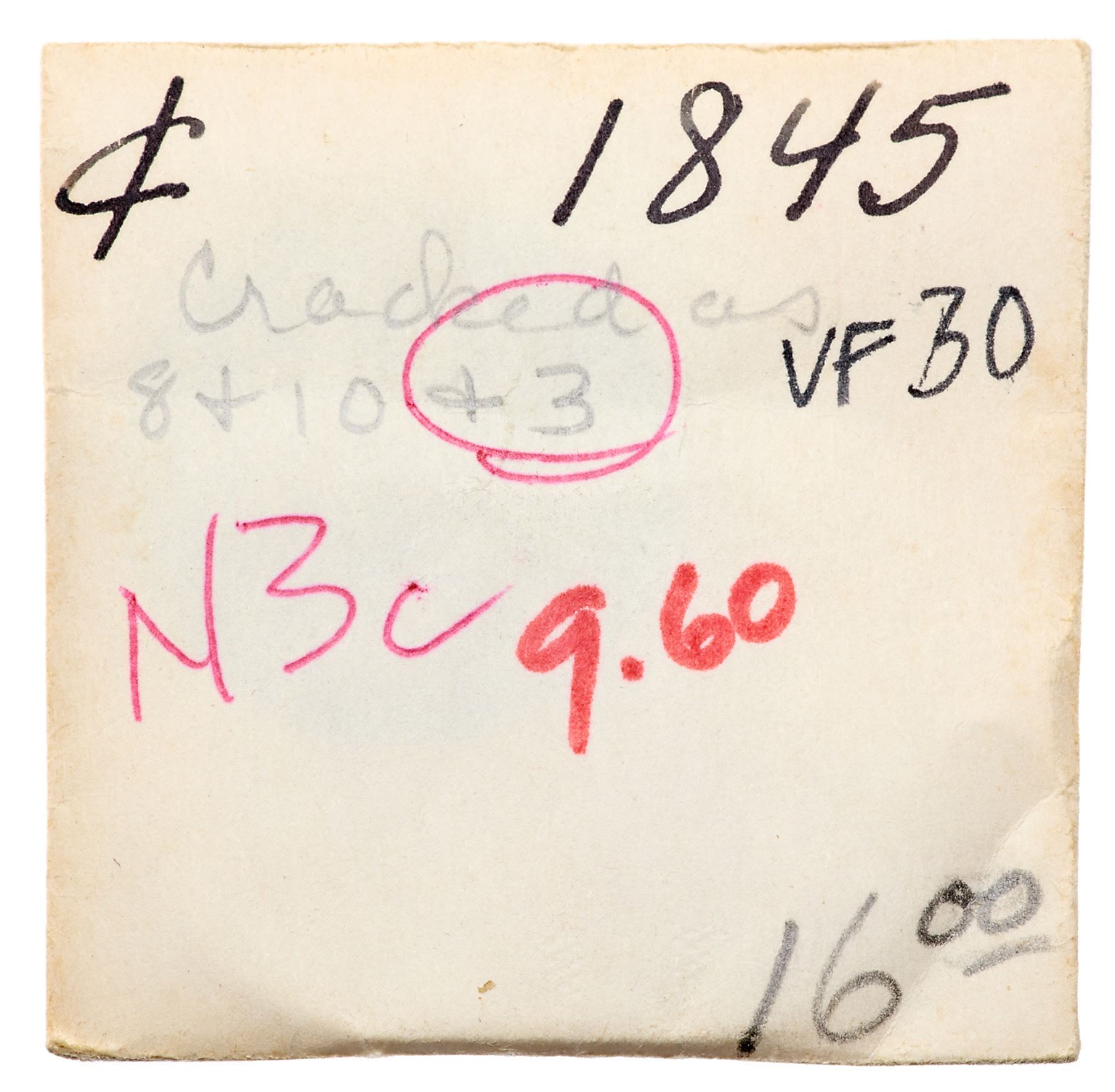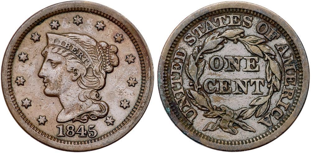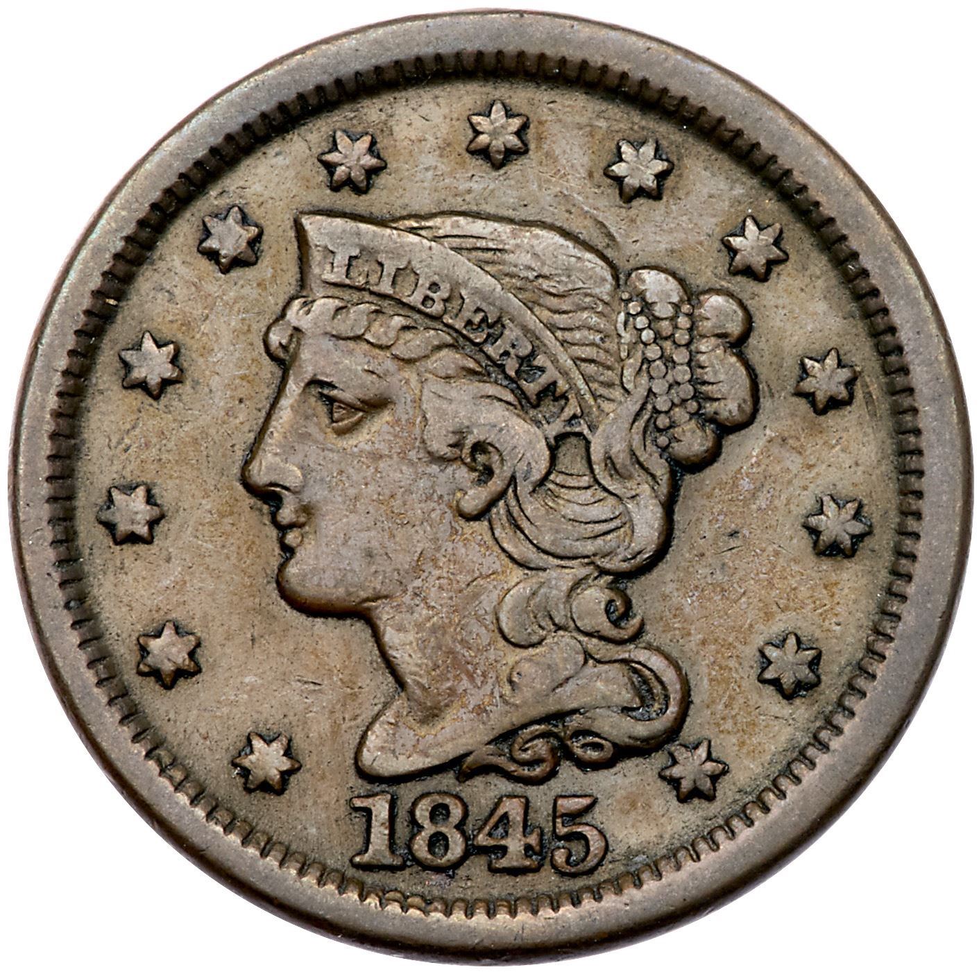 Group of Five 1845 Cents grading F15Includes N-3 R4, N-4 R1 Repunched 5, N-6 R2, N-10 R3-, and N-12 R3+. Some are sharper with marks but all are glossy brown and chocolate with a strong date. Lot of 5 coins.Pedigree: From the Fred H. Borcherdt Collection