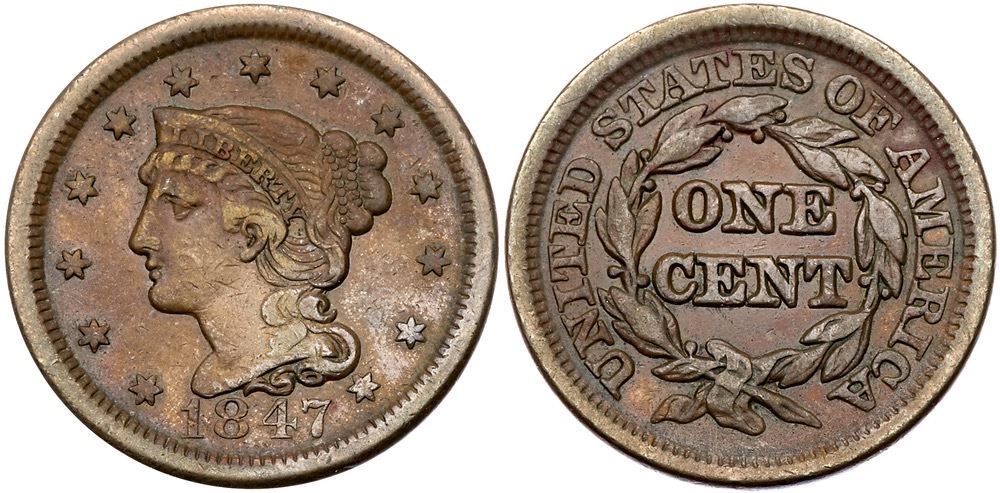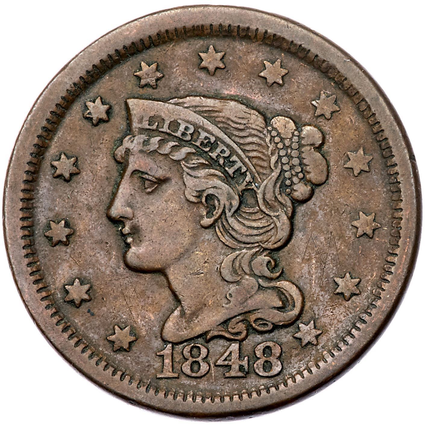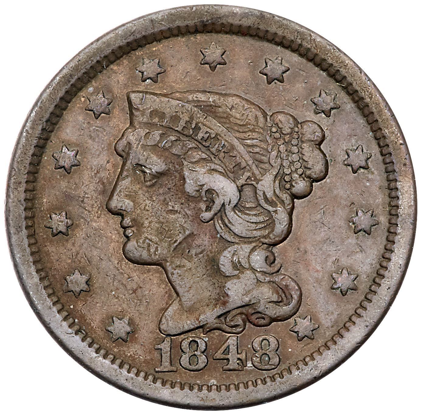Group of Five 1847 & 1848 Cents grading F15Includes 1847 N-38 R1, 1848 N-3 R2 Repunched Date, 1848 N-14 R4-, 1848 N-16 R2 Repunched 4, and N-17 R1 Repunched 4. Some are sharper with marks but all are glossy brown and chocolate with a strong date. Lot of 5 coins.Pedigree: From the Fred H. Borcherdt Collection